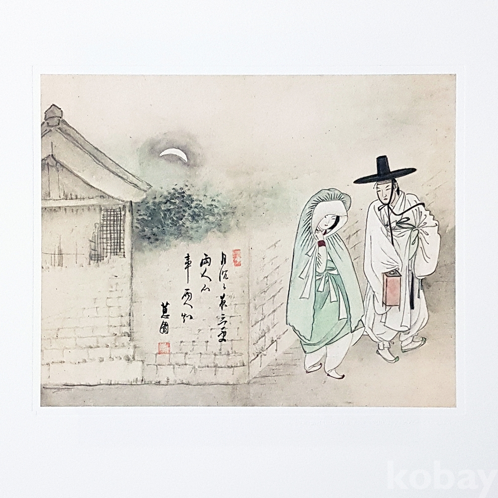 신윤복 | 월하정인 18세기 말, 종이에 수묵담채, 간송미술문화재단 소장