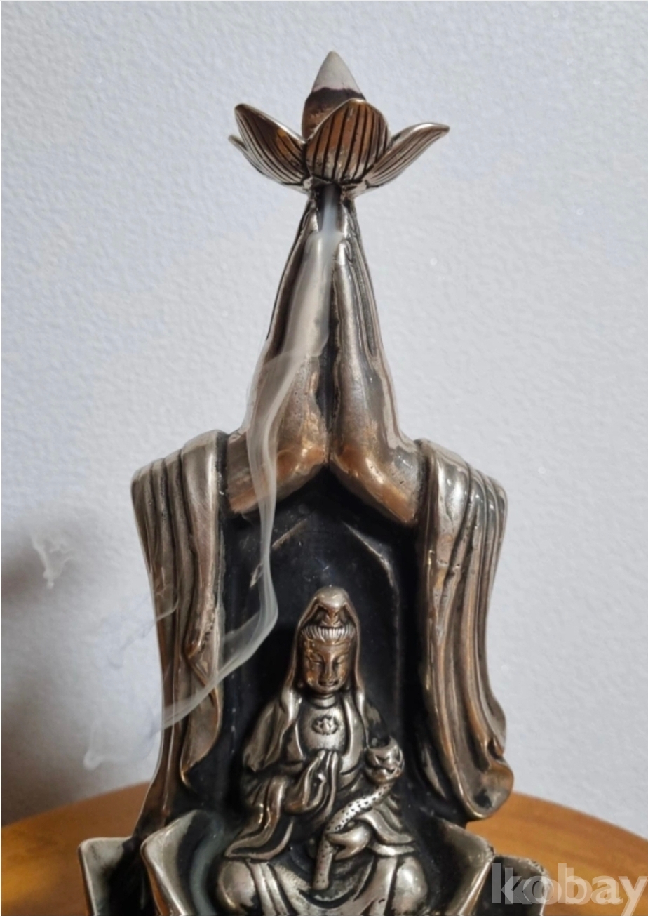백동향로ㆍ 연꽃위에 부처님 손위에 향 ㆍ연기가 속으로 아래로 자욱히 깔립니다ㆍ(마지막사진) 묵직하고 멋있습니다 ㆍ높이21