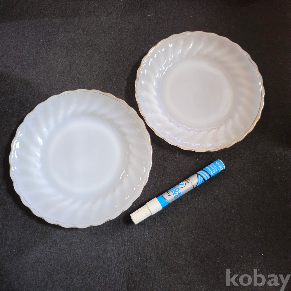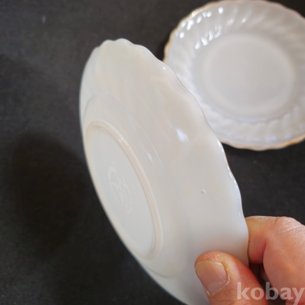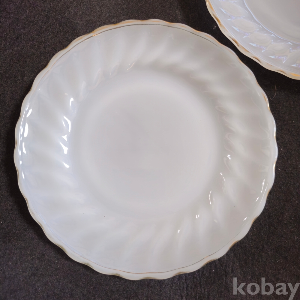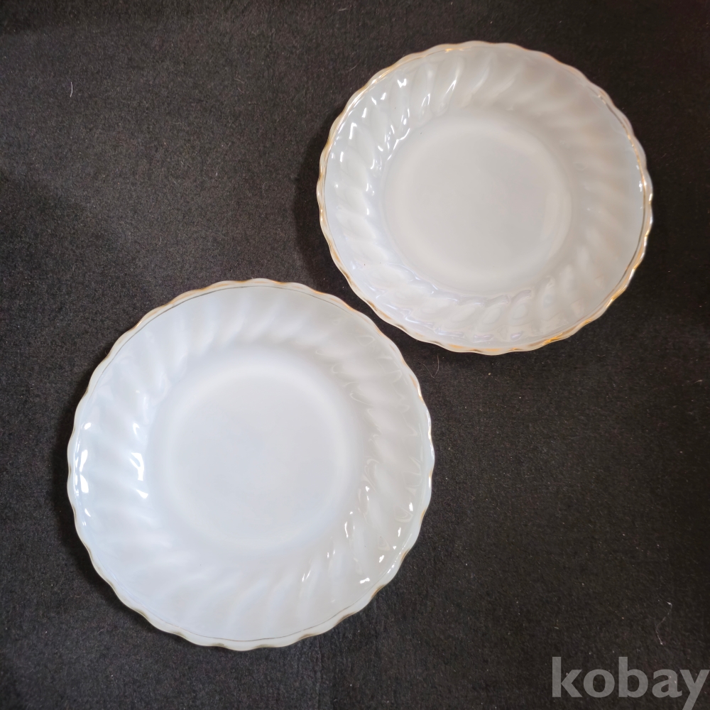 (((빈티지접시))) 오래전 미국에서만든 ANCHOR HOCKING (앵커호킹) 빈티지 빗살무늬 밀크 접시 2개 (지름 18.5 cm)