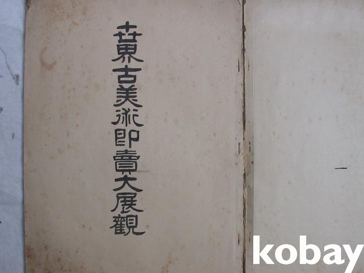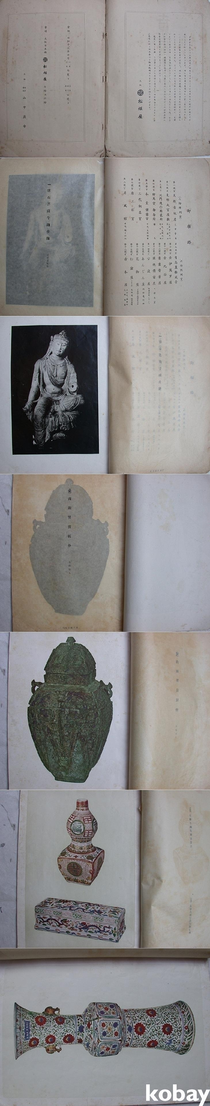 ▒ 소화13년(1938년) 오사카의 山中商會에서 주최하여 松坂屋에서 전시한 <世界古美術卽賣大展觀> 도록이다. 표지의 제목에는 '즉매'라는 말이 빠져 있으나 내표지 제목에는 들어가 있다. 간기는 따로 없으며 머리말 다음의 날짜/장소 소개에 그렇게 되어 있다.