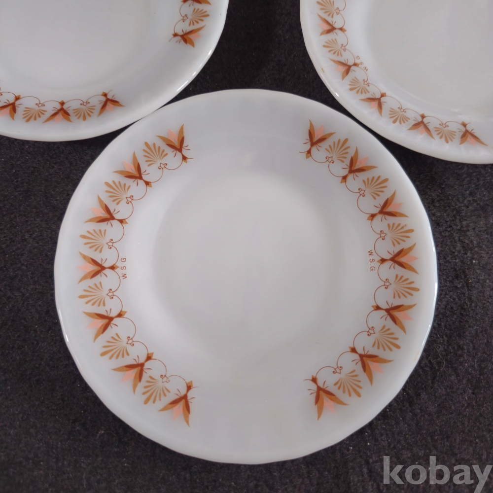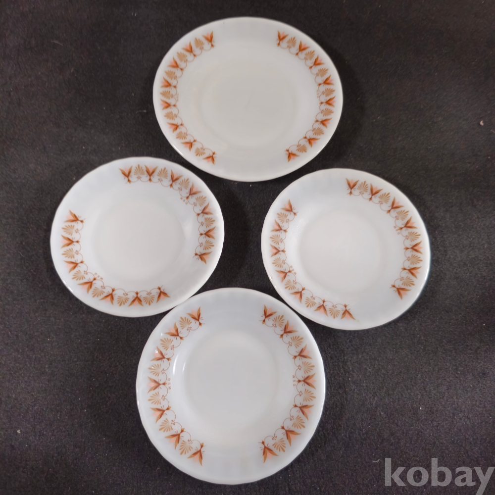 (((빈티지접시/도자기접시))) 오래전 꽃문양 MADE BY US GLASS 빈티밀크접시 2종 4개 (지름 13/16 cm)
