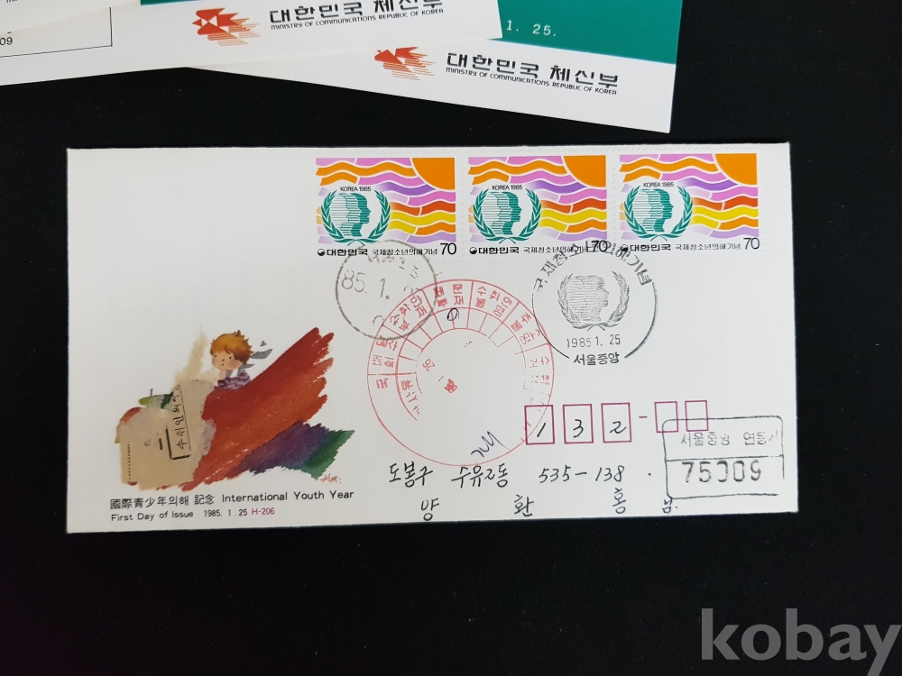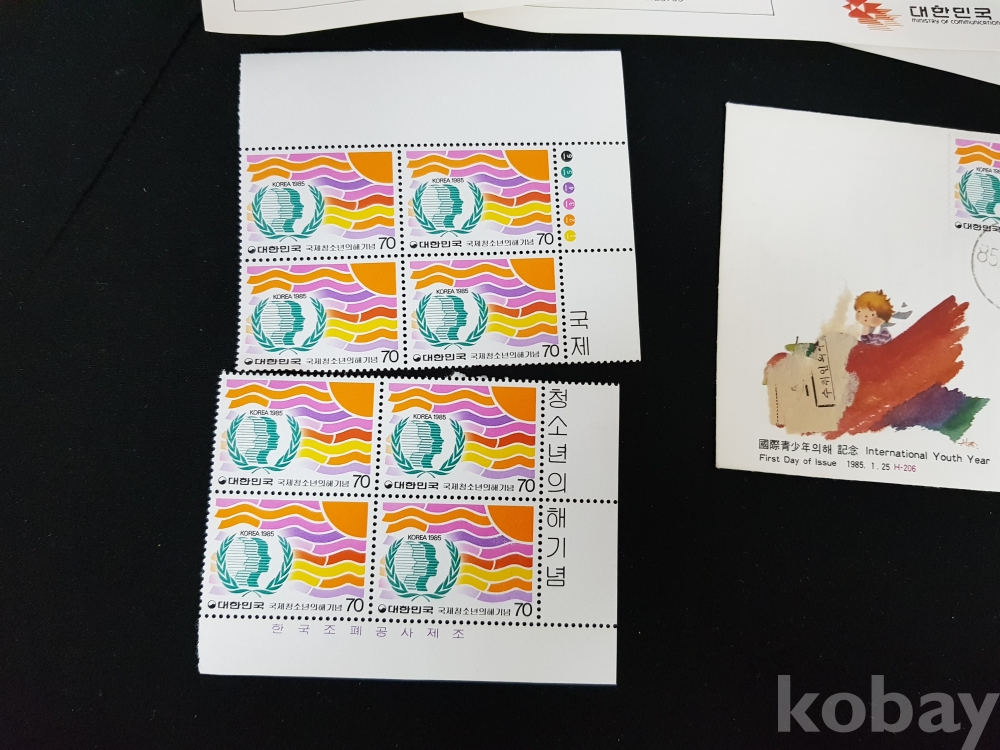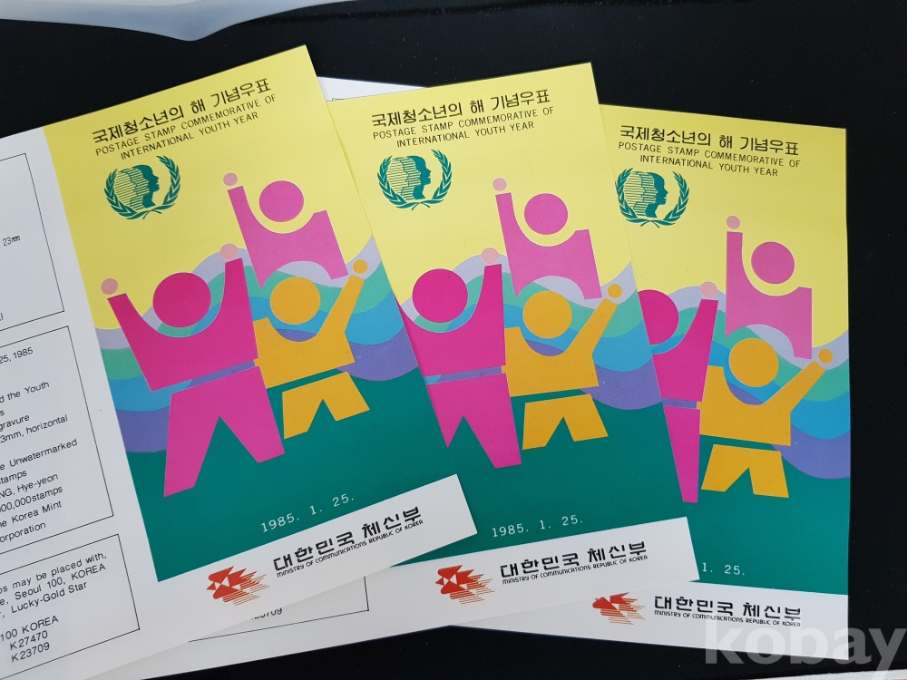 - 1985년 국제청소년의 해 안내카드, 초일봉피, 명판 등 모음