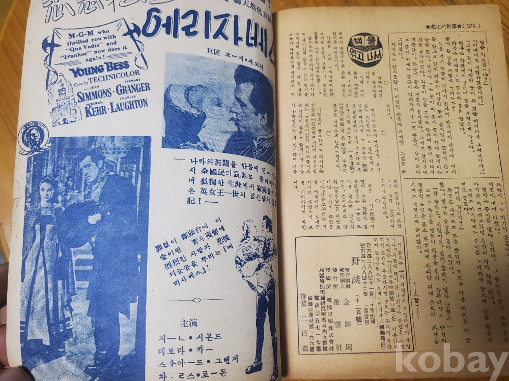 1. 야담(野談) 1권 6호, 희망사, 1955년, 274쪽, 표지모델 무희 강선영, 상태 상, 사진 참조