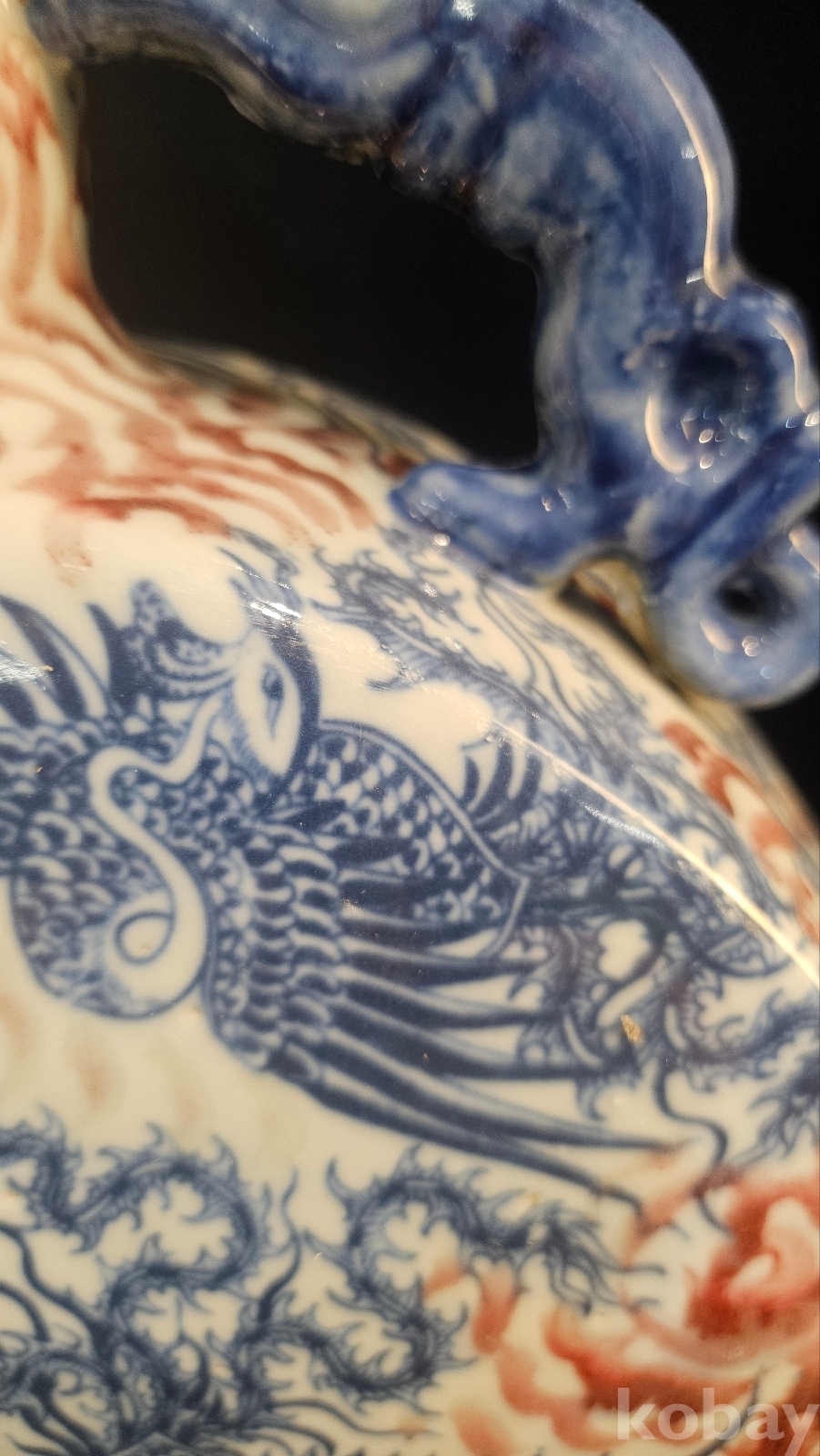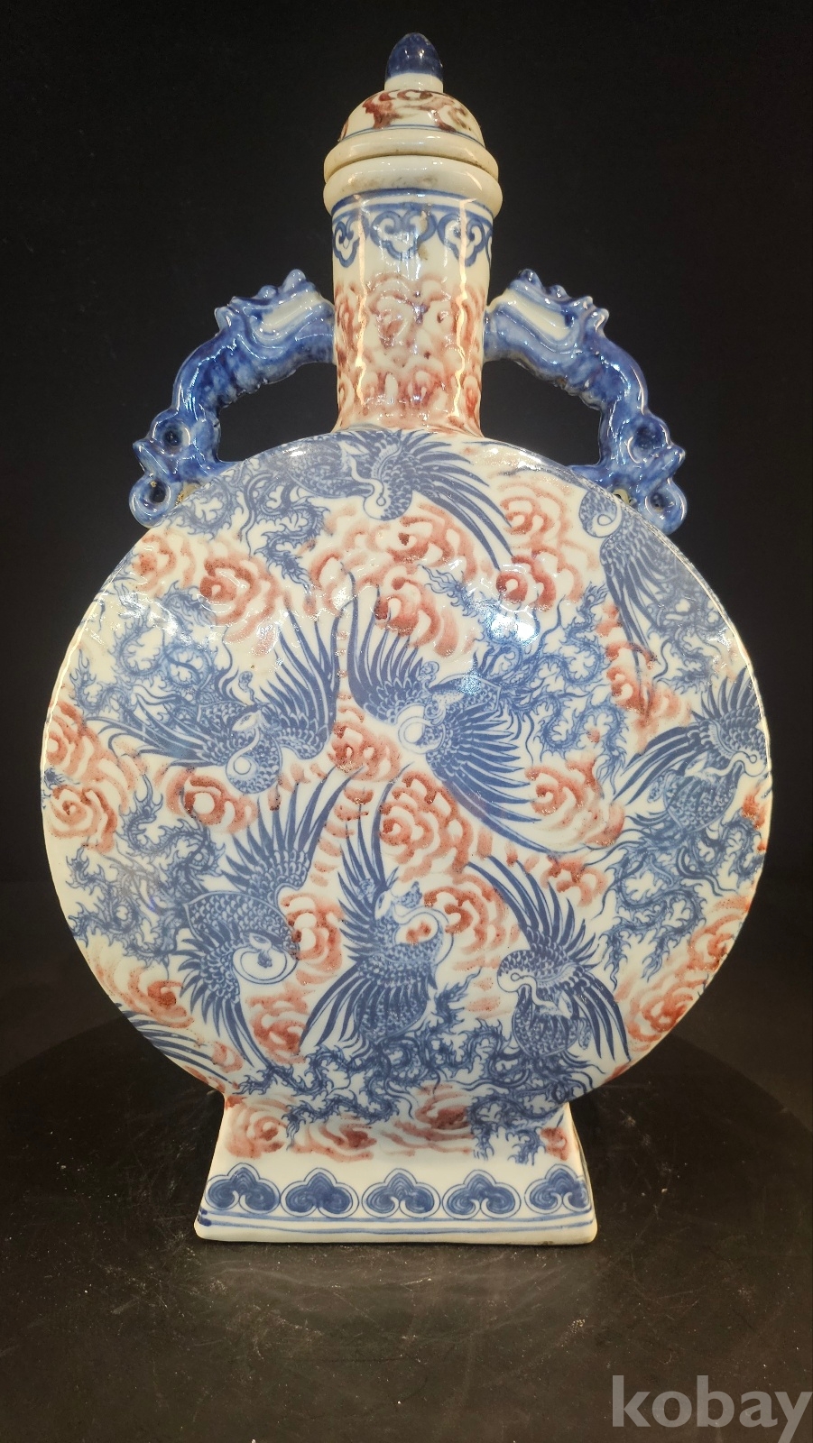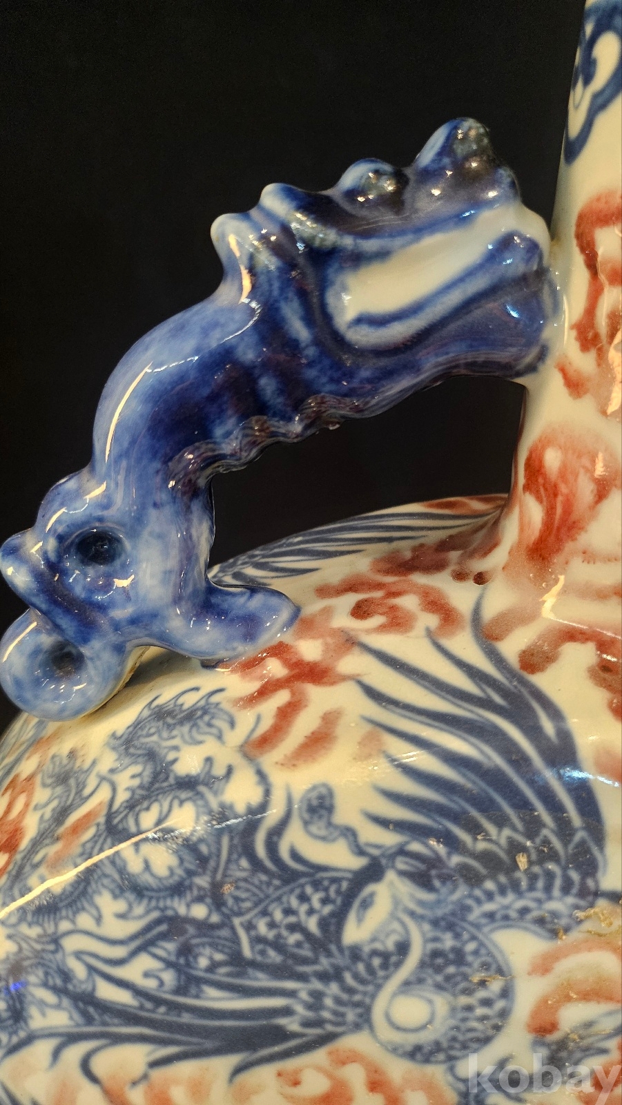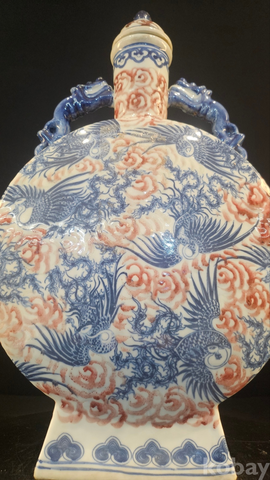 높이 45 황후의 제례용이나 외교사절용 기물이다 태첩에 유약흐름이 청대식 자연유동...... 봉황문의 비늘이 수묵선 이중이다 굽을 보면 사각 관요식형태이다 황실 의례기급의 귀한 기물이다 청말~민국시기의 고방기물이다 연대는 어느정도 보장되는 골동품인 동시에 구봉문의 특별한 도안이 있는 기물이다