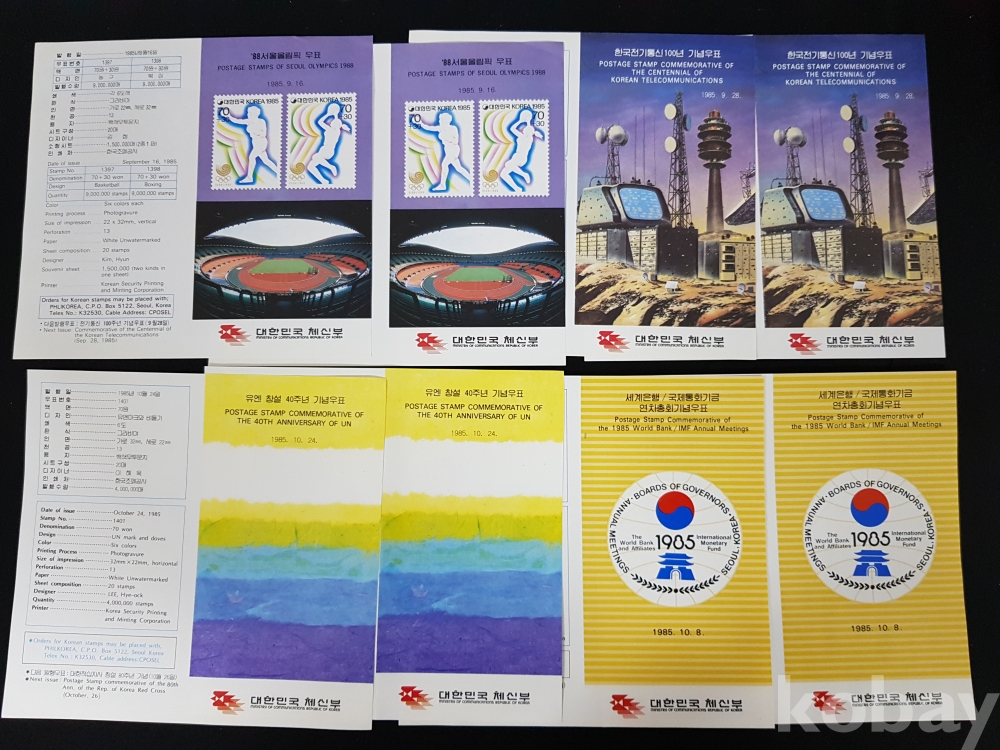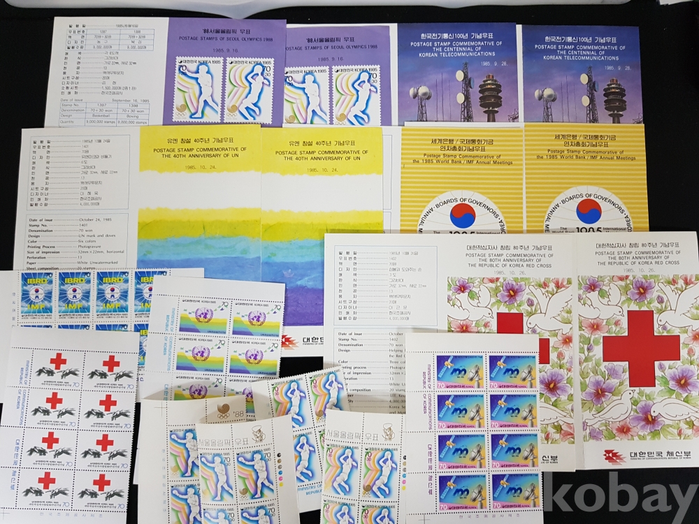 - 1980년대 기념우표 5종 안내카드, 초일봉피, 명판 등 모음