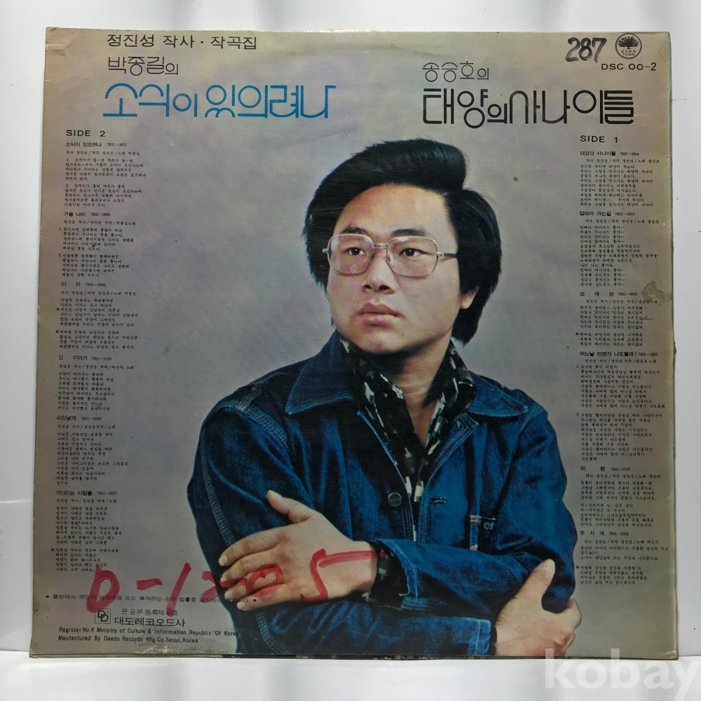 LP 86,000-46 송승호 / 박종길 - 태양의 사나이들 . 자켓 EX 알판 EX 78 년 국내반
