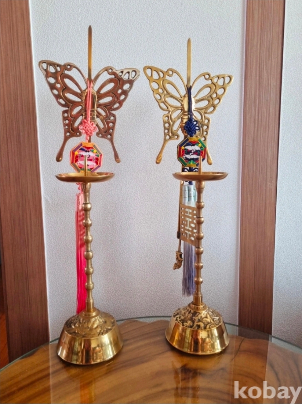 고급스런 유기로 만든 대가집 신혼방의 촛대한쌍