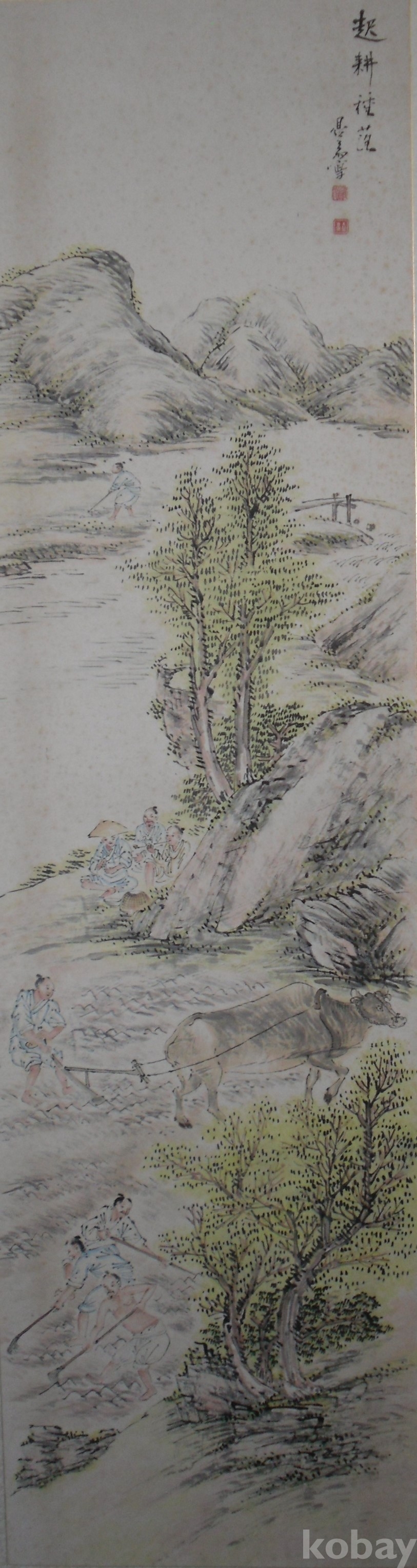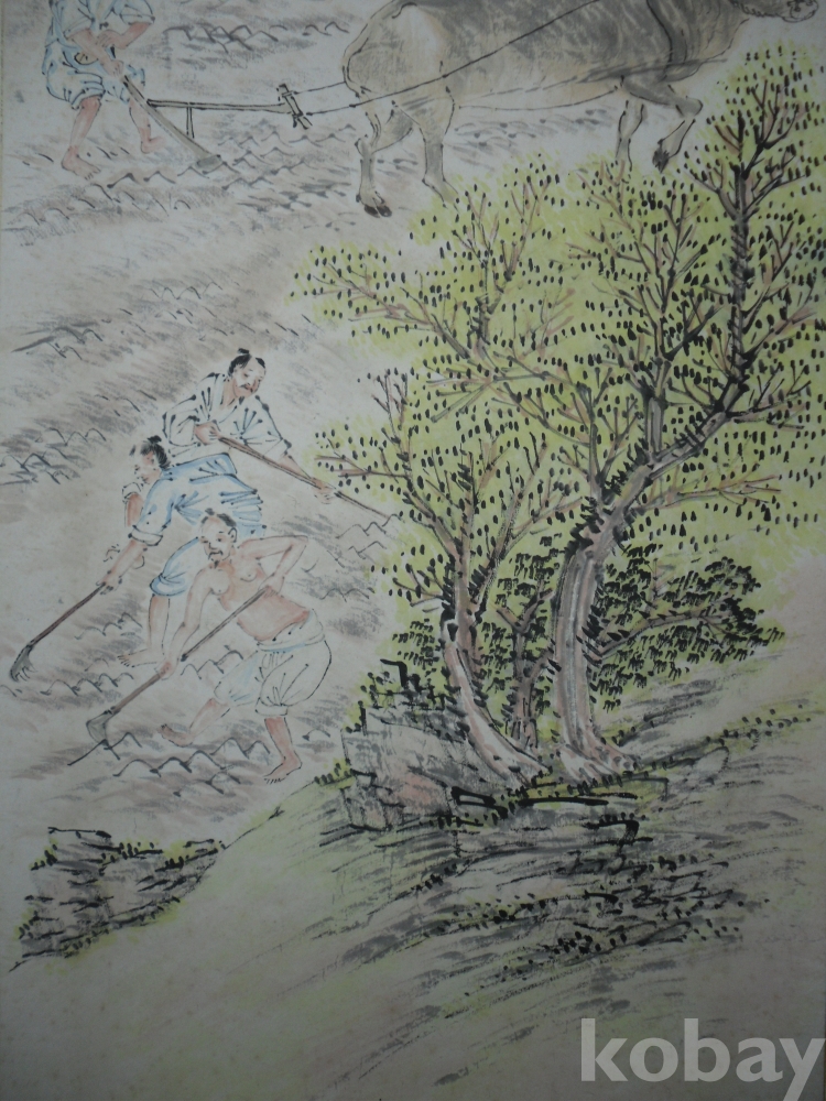 한국화10대작가 , 유명동양화가 정재 최우석 선생님의 귀한 농경도 동양화 작품입니다.