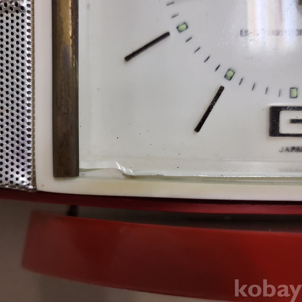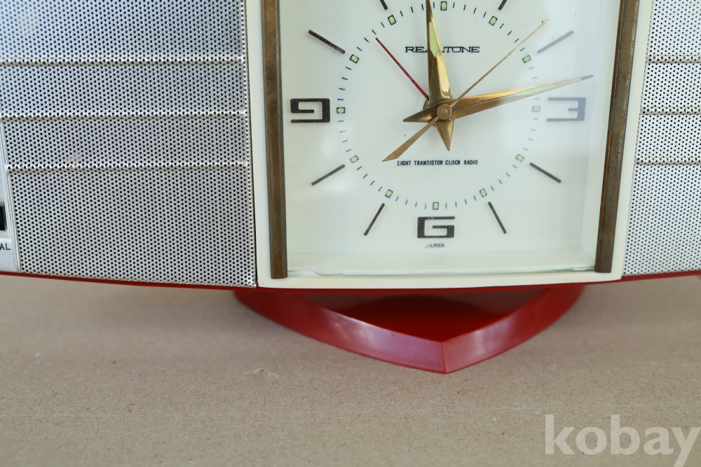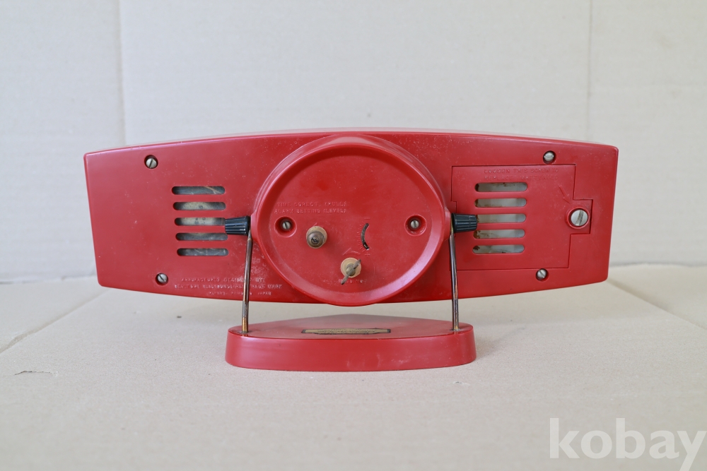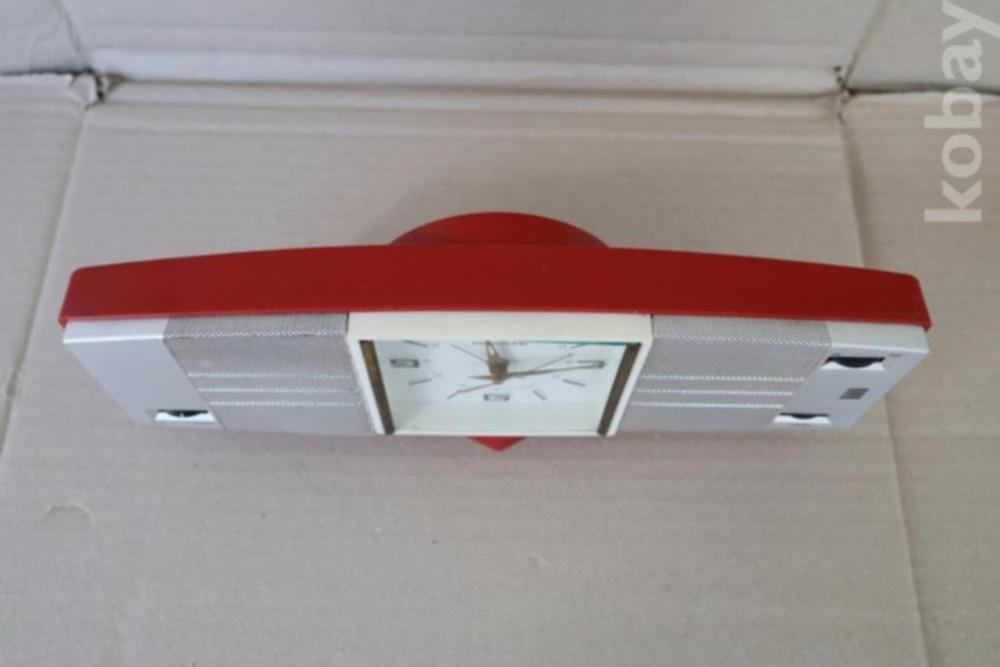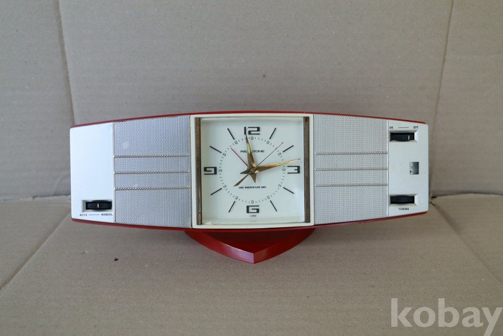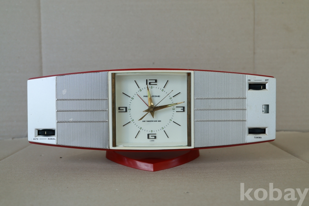 - 1960년대 일본에서 생산된 전형적인 스페이스 에이지 스타일의 기기입니다. 양옆으로 날렵하게 뻗은 레드 컬러 바디와 중앙의 사각형 아날로그 시계, 세련된 실버 그릴이 조화를 이루어 미드센추리 모던 인테리어의 핵심 소품으로 손색이 없습니다. 당시 '8 트랜지스터' 기술을 탑재한 고급 사양의 라디오였습니다.