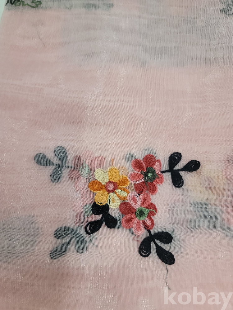 [*천원행복*] L - 2 - 0638 자수가 놓여진 스카프 (연핑크 ,160*77, 미사용)