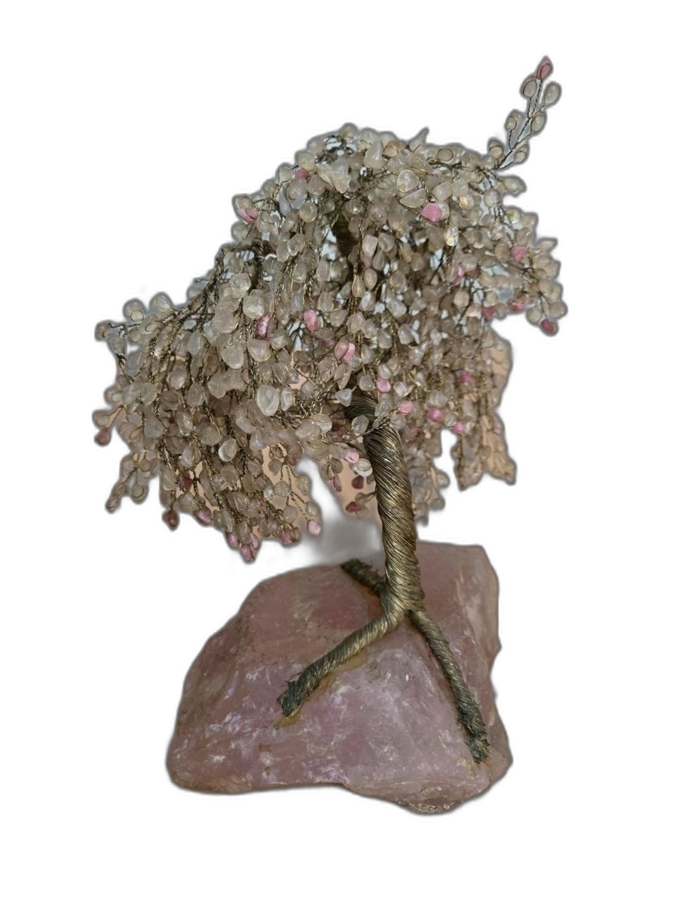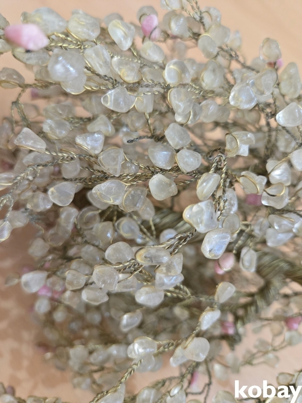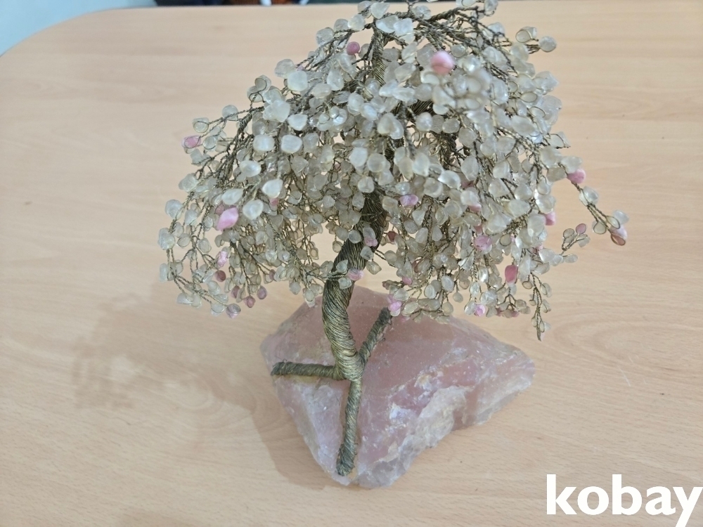 돌 조각이 주렁주렁 달린 구리 선 나무 입니다.