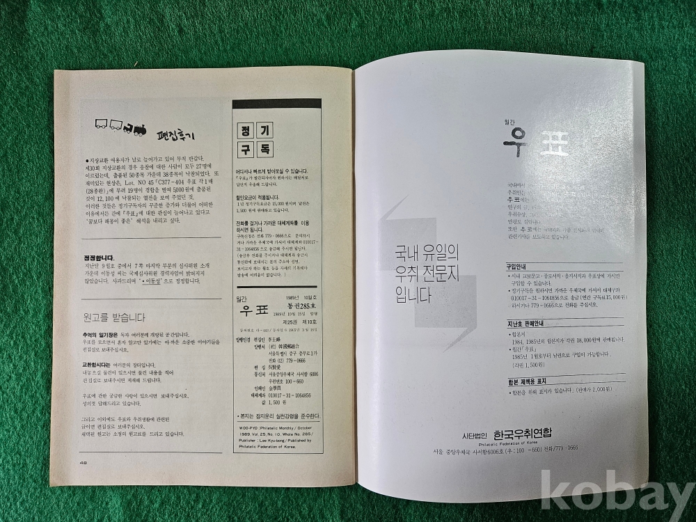 1] 품명 : 우표취미생활인의 교양지 " 우 표 " (통권 285) 10월호