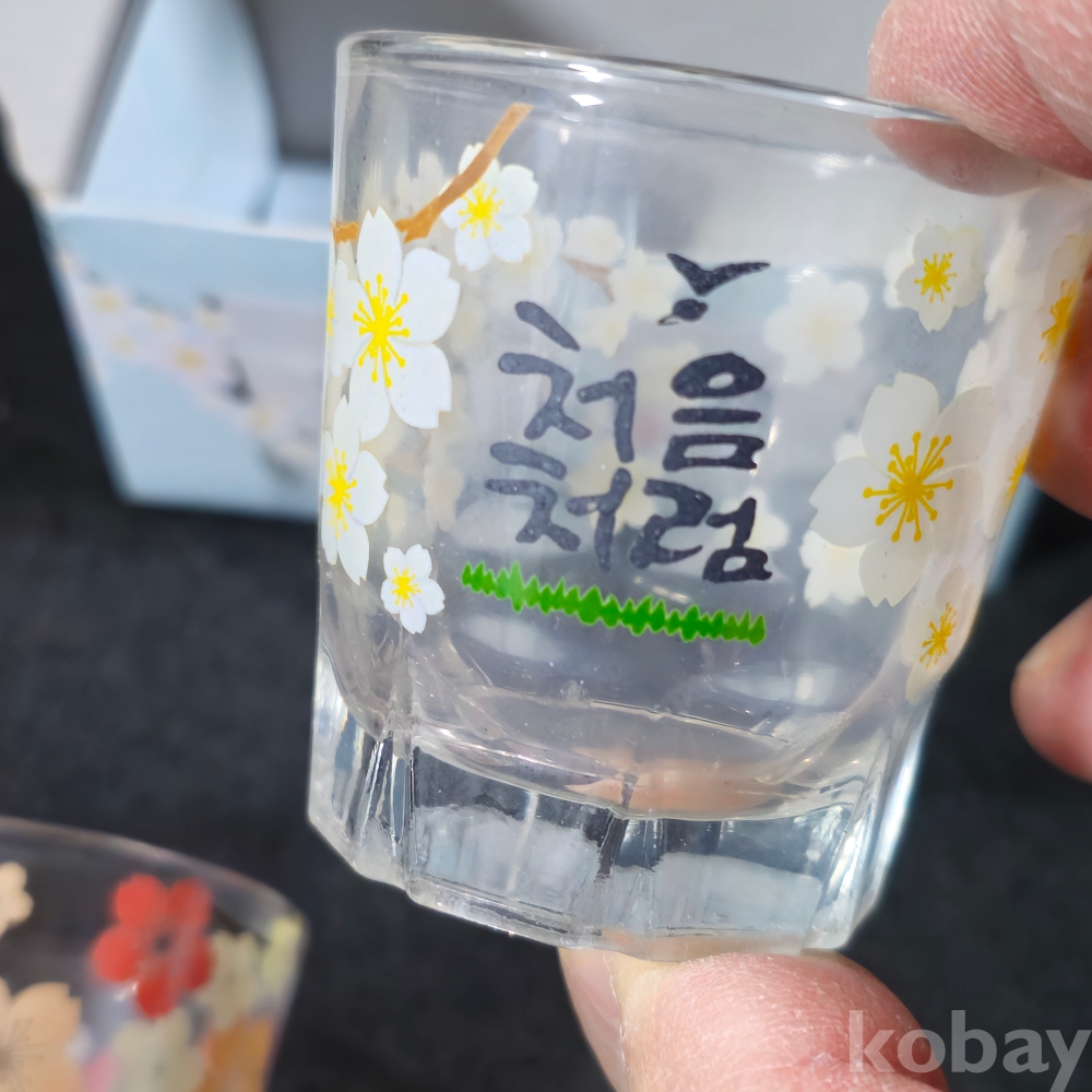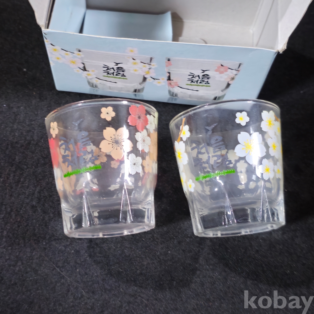 (((술자료/술잔))) 처음처럼 봄꽃잔 2종 (미사용)
