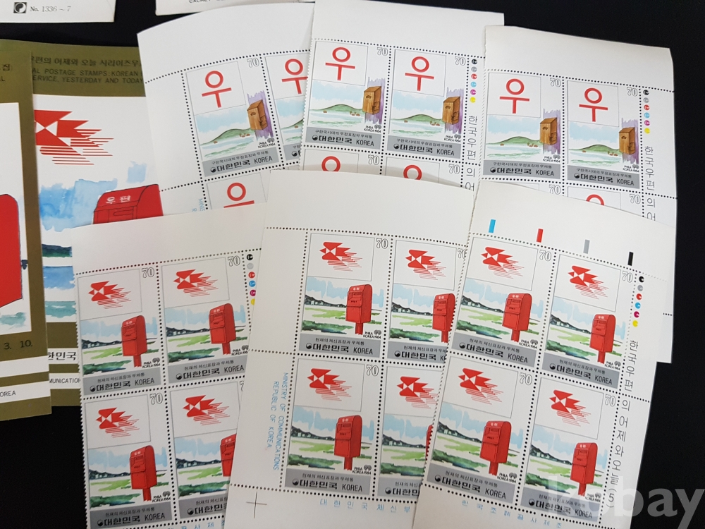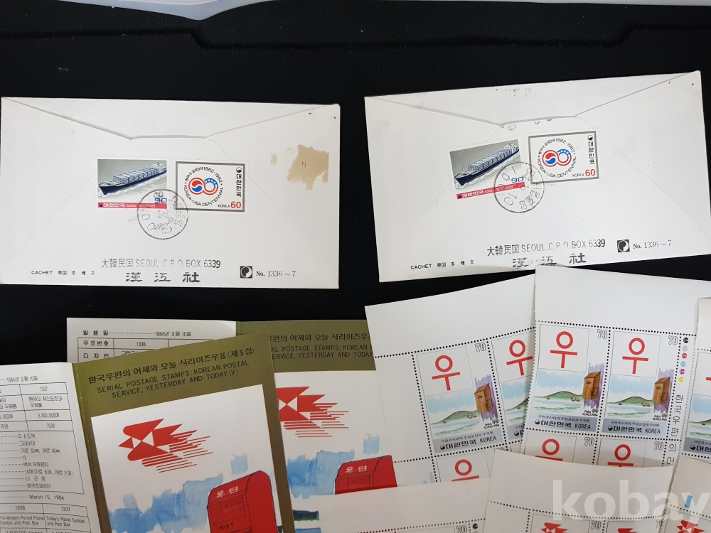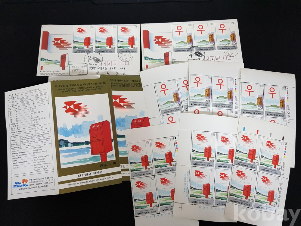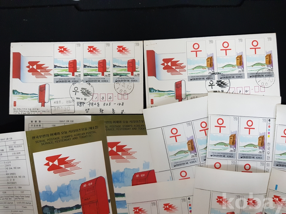 - 1984년 한국우편의 어제와 오늘 시리즈 제 5집 안내카드, 초일봉피, 명판 등 모음