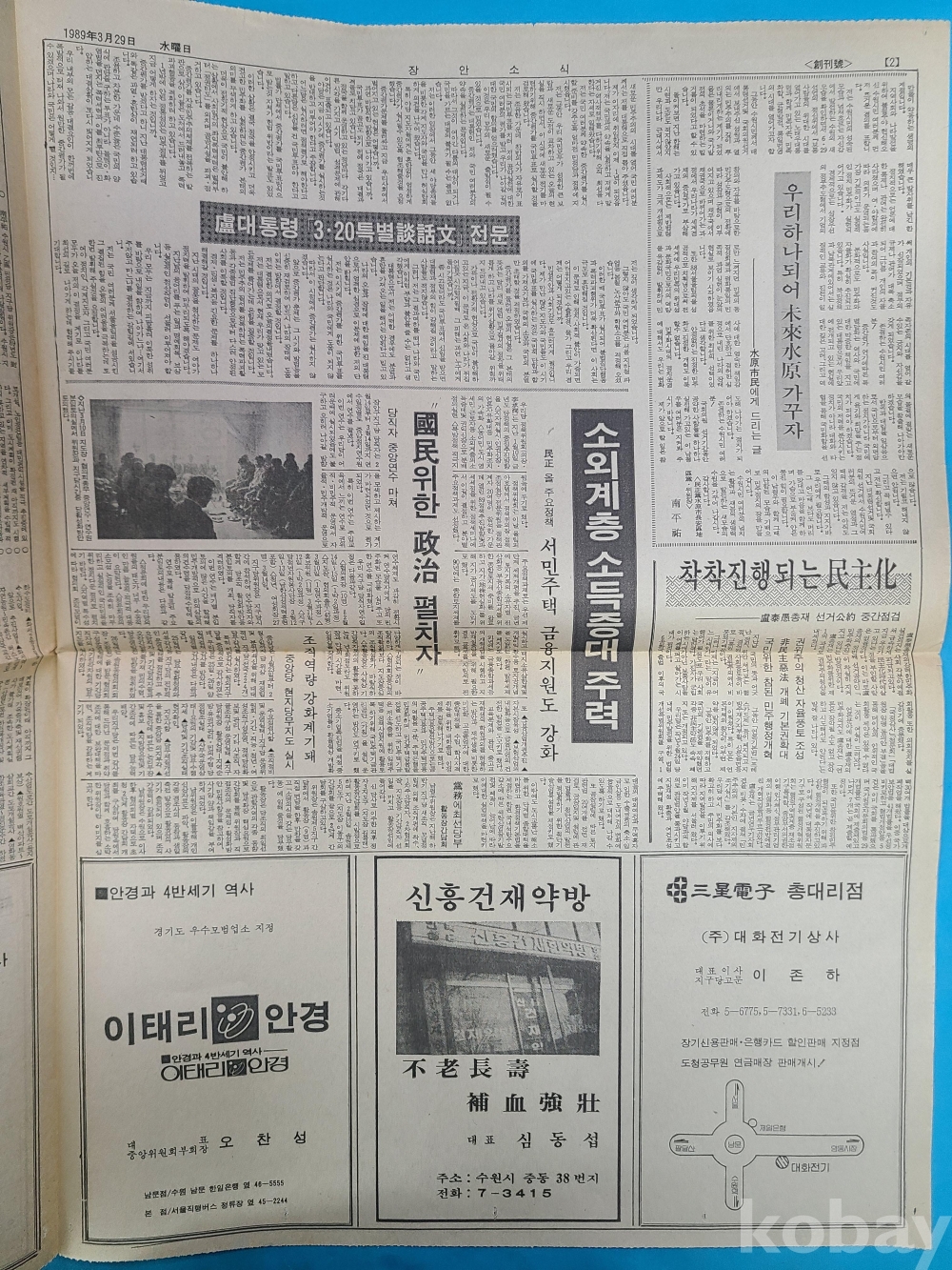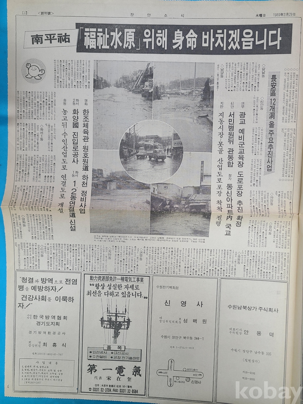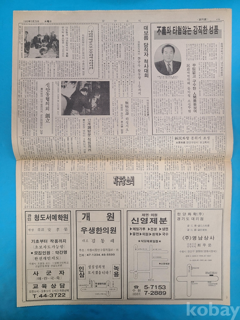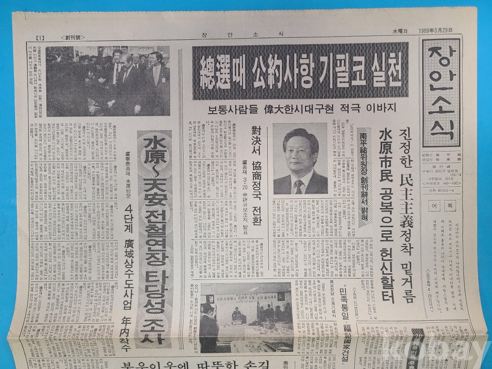 創刊號 [장안소식]. 1989년3월29일 발행 발행인 남평우. 총 4면