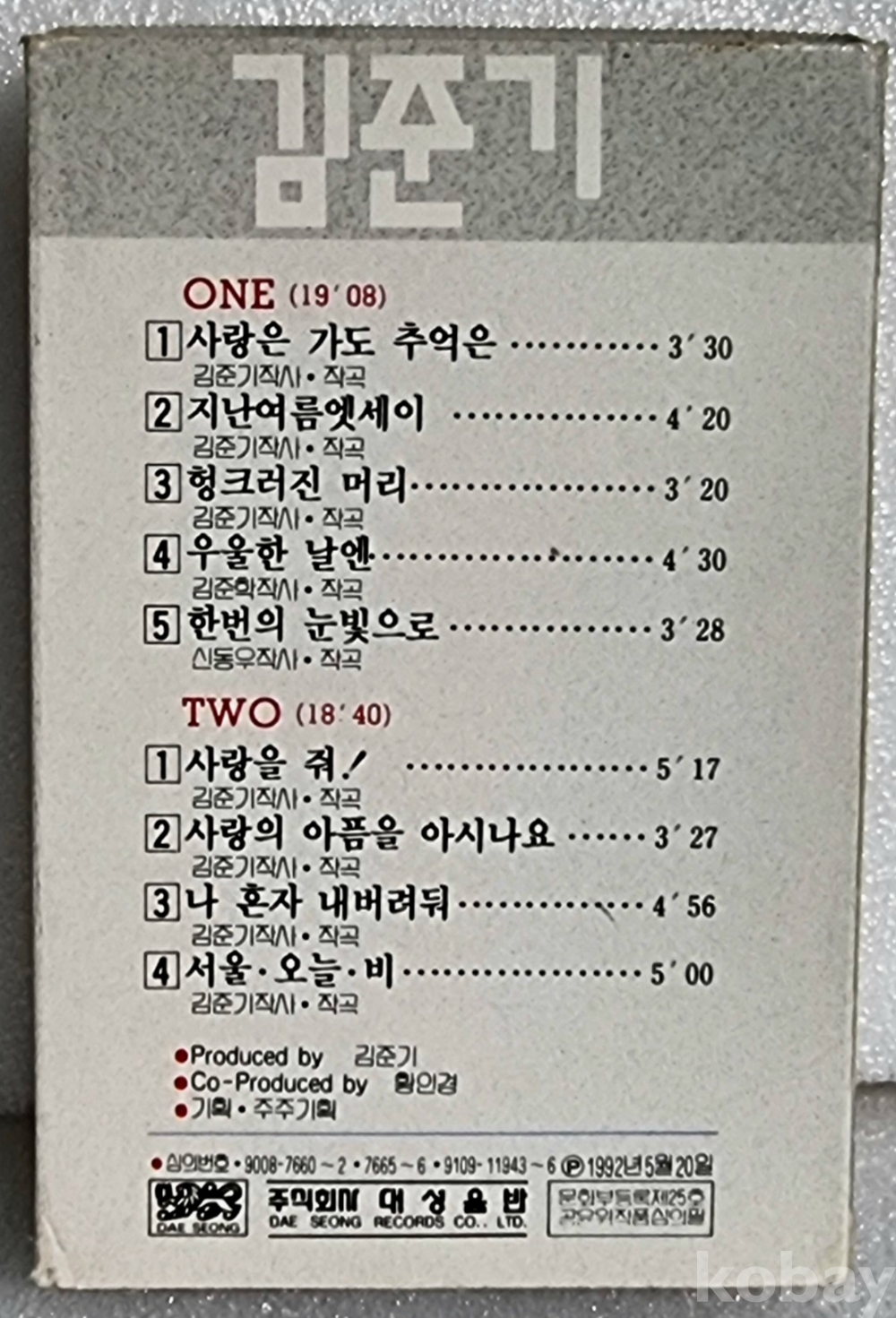 A카세트테이프_가요 / 김준기 / 개봉 /
