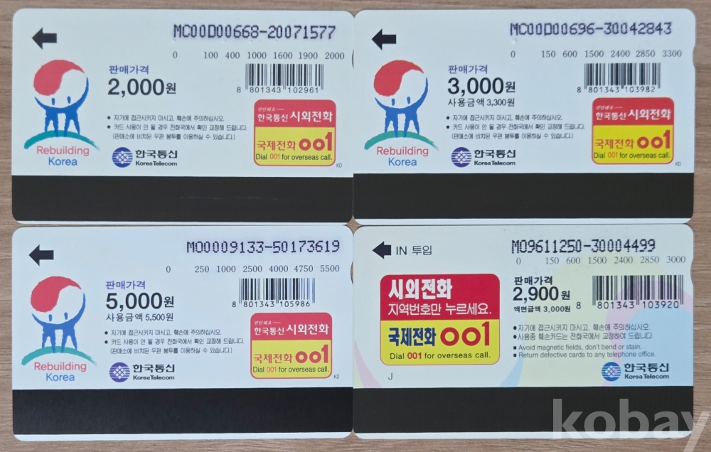 희귀 8-90년대 공중전화카드 4종 #50