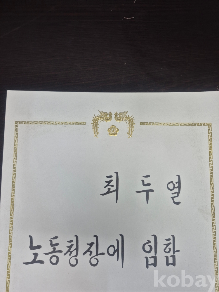 1973년 박정희 대통령 임명장 노동청장 최두열 노동청장 오리지널 입니다 26.5*38.5