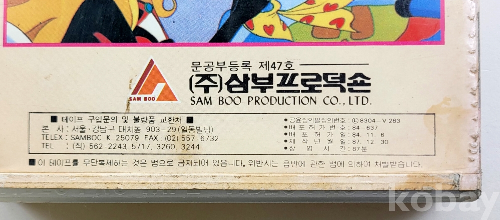 물 품 명 | 타임보칸 (1) : 다이아몬드와 짜나콩의 비밀 / 1987년 / 삼부프로덕션 |