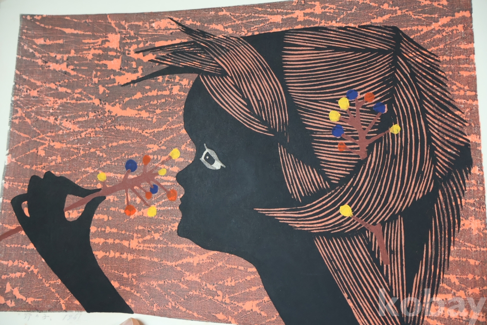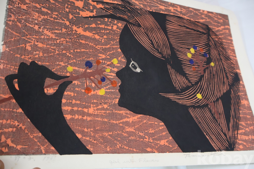 There is surprisingly little information on this well-regarded woman sosaku hanga artist who passed away in 1999. Born in Hirosaki, Amori Prefecture on August 11, 1937 she graduated from Tokyo Women’s University of Arts (Women’s College of Fine Arts) in 1958. There is little if any information about who she studied with and what led her to the create woodblock prints, but she was sufficiently talented to have received a travel grant in 1962 from the College Women’s Association of Japan and to have her print Tori B (Bird B) included in James Michener’s 1962 seminal book and print portfolio “The Modern Japanese Print, An Appreciation.” In commenting in his book on the two women artists included in the portfolio, Iwami Reika (b. 1927 - ) and Shima, Michener notes, “... for two women to win prizes in a competition such as the present one signalizes a triumph of no small proportion. It has never been easy for women to attain prominence in Japanese art, and for two such young ones to have done so is indeed an accomplishment.”