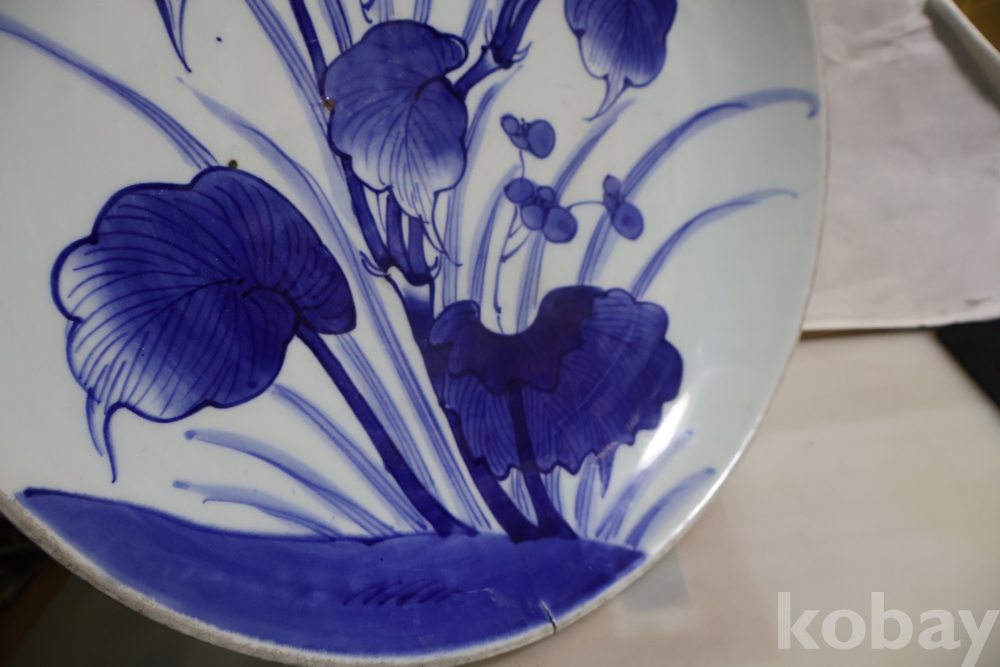 19세기 이마리 접시 임니다 멋진 난초그림 색감 등등 명품 이며 소성 당시 생긴 미세한 갈라짐?이 보임니다 6번 사진 묵직한 명물 임니다 난초의 그림이 명화 임니다