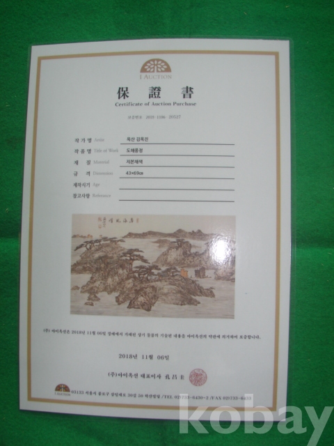 # I-옥션 보증서 있음. 액자가 낡아 해체하였습니다. 작품만 보내드립니다.