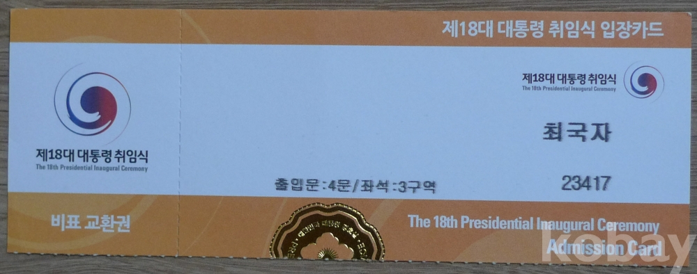 2013년 제18대 대통령 취임식 입장 카드(주황색)