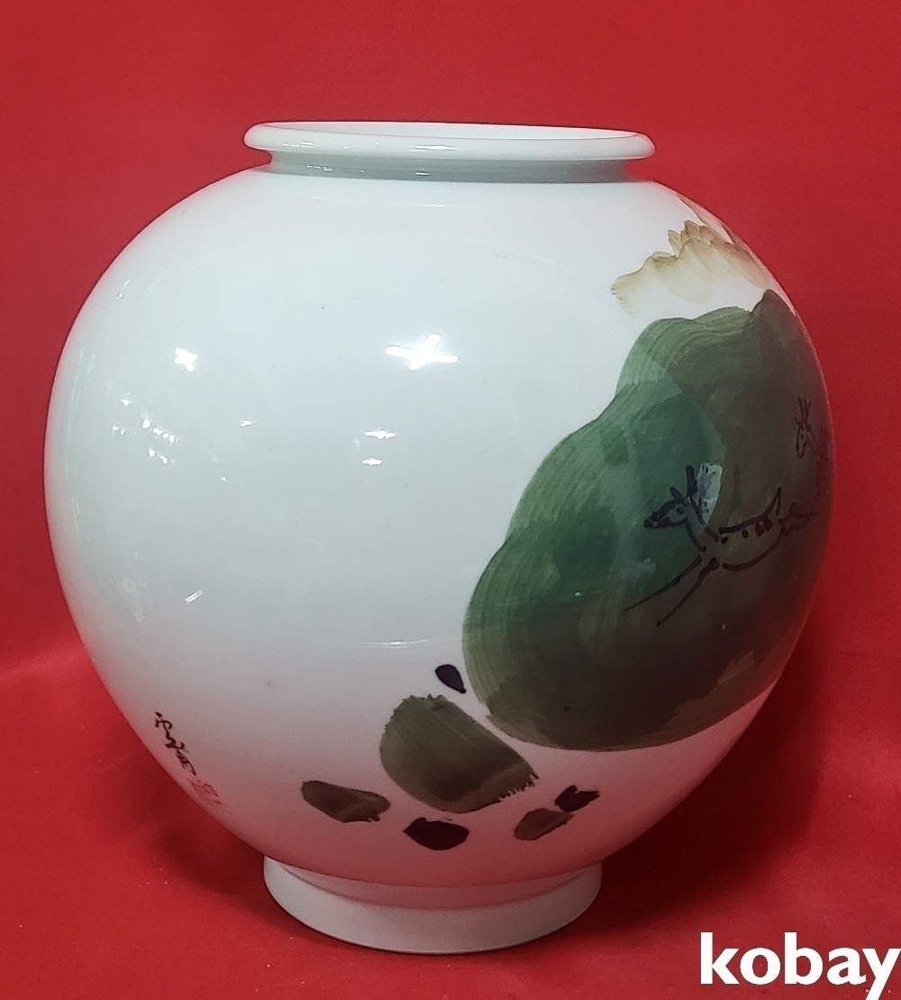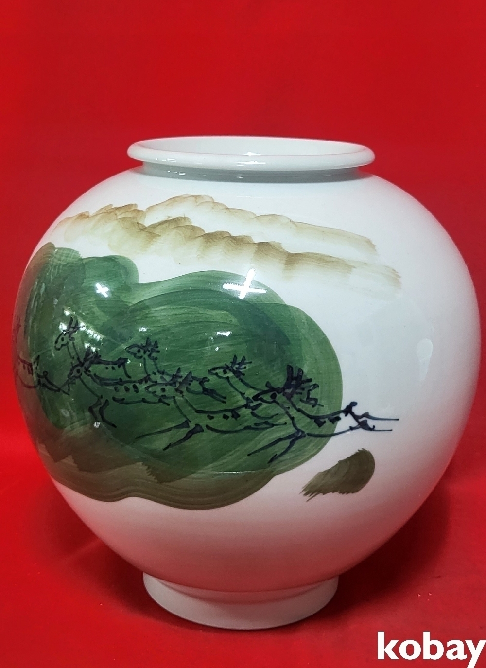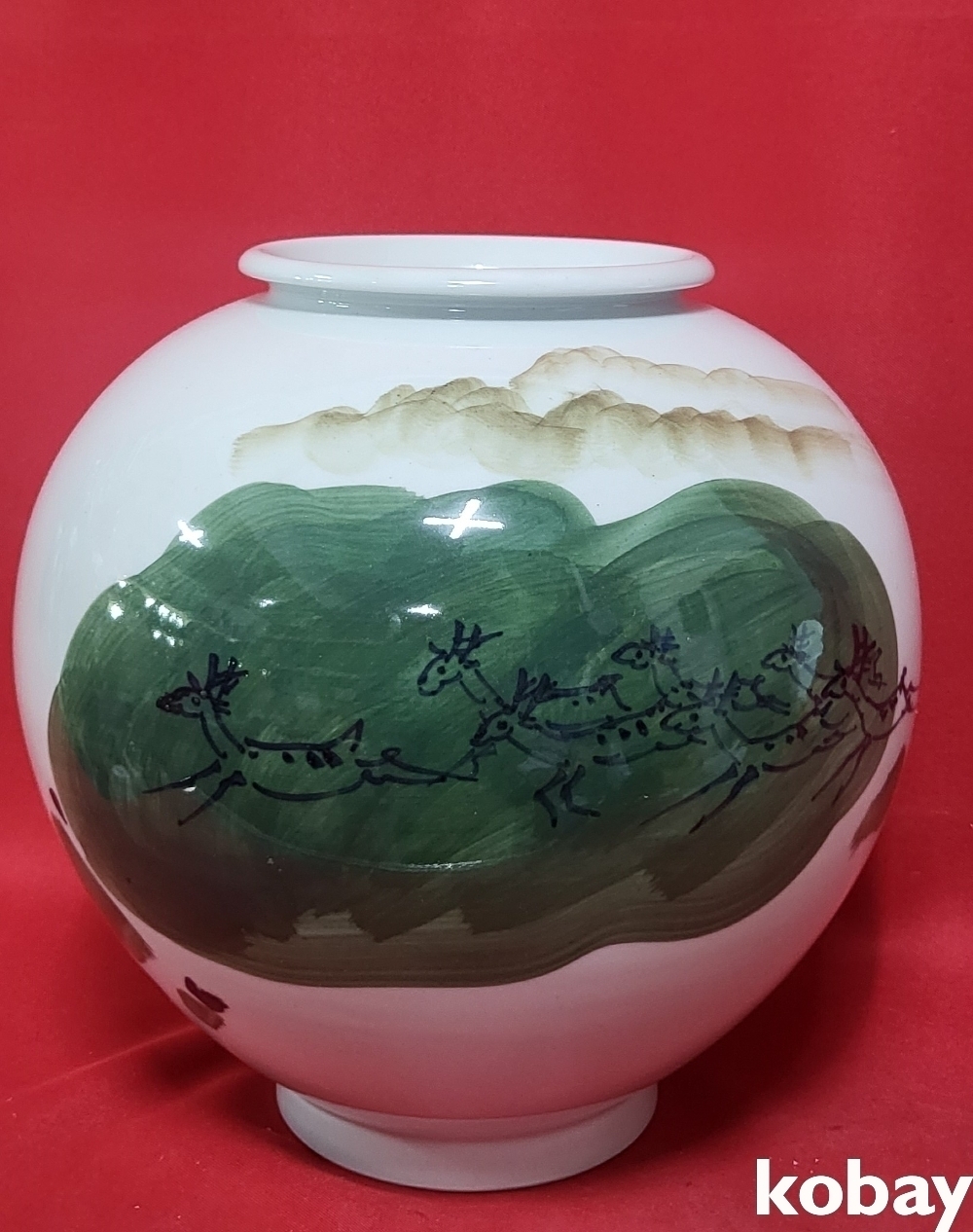 작가 수결이 있는 떼사슴 문양 달항아리입니다,