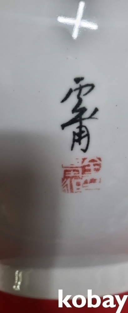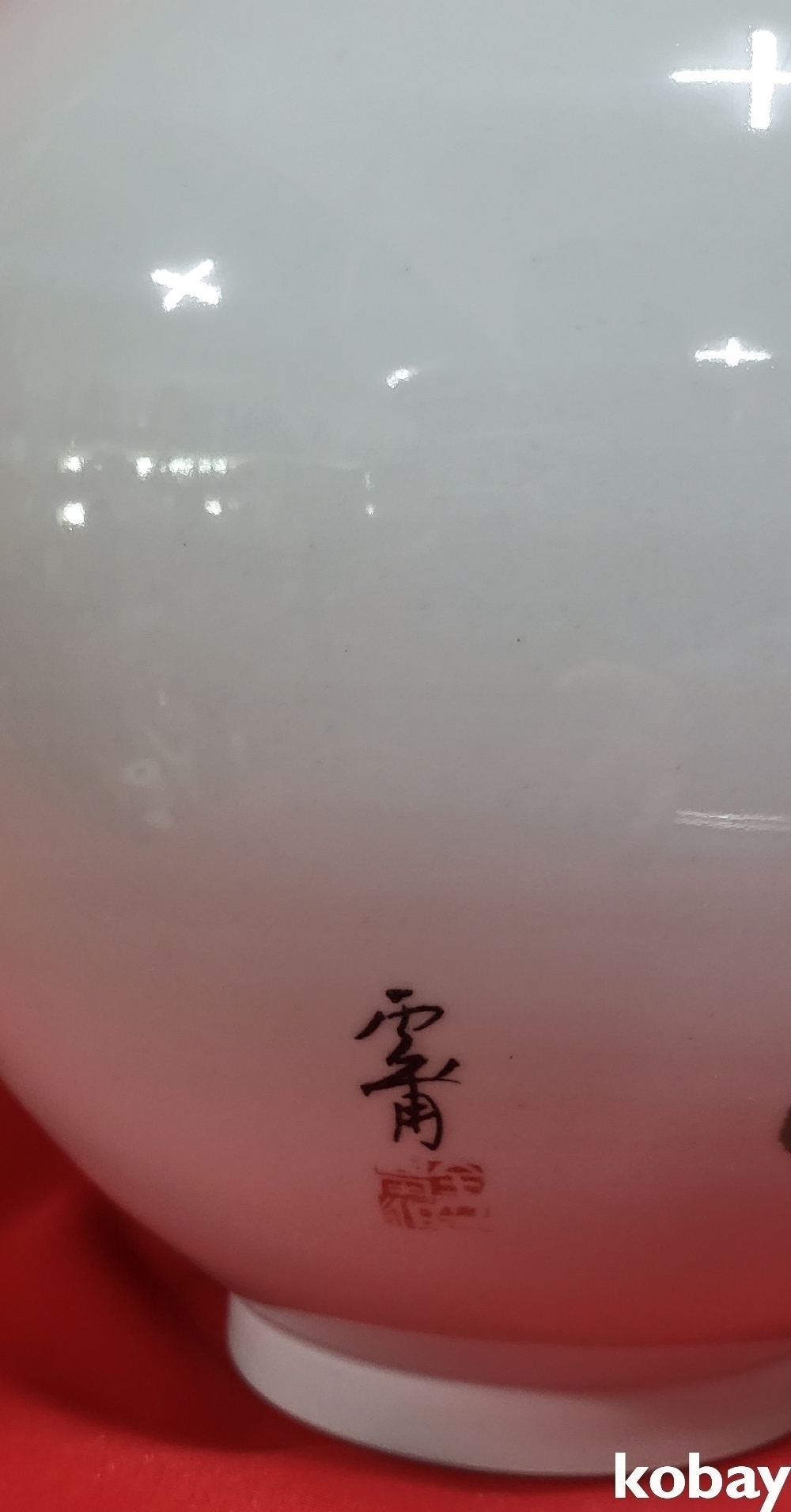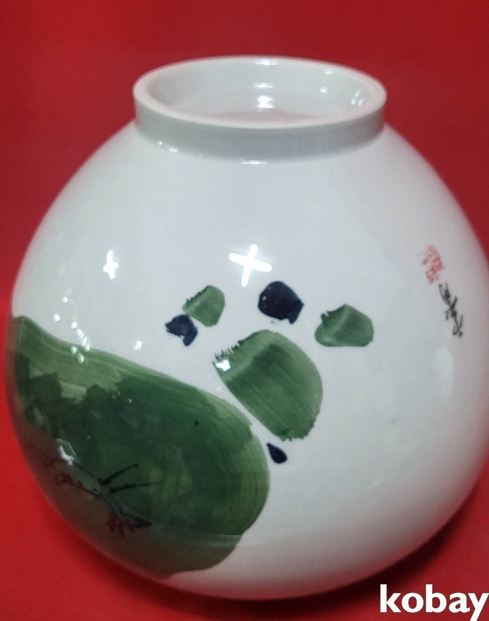 작가 수결이 있는 떼사슴 문양 달항아리입니다,