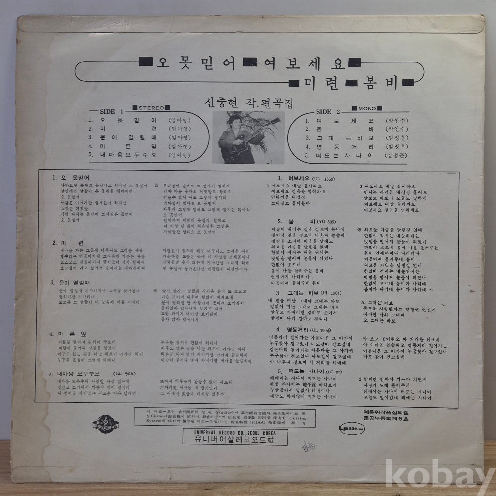 | 자켓상태 | EX : 약간의 마모, 모서리 찢김 존재 | 음반상태 | EX : 재생에 영향 없는 가벼운 기스 존재 | 발매정보 | 초반 | 가사지여부 | 무 |