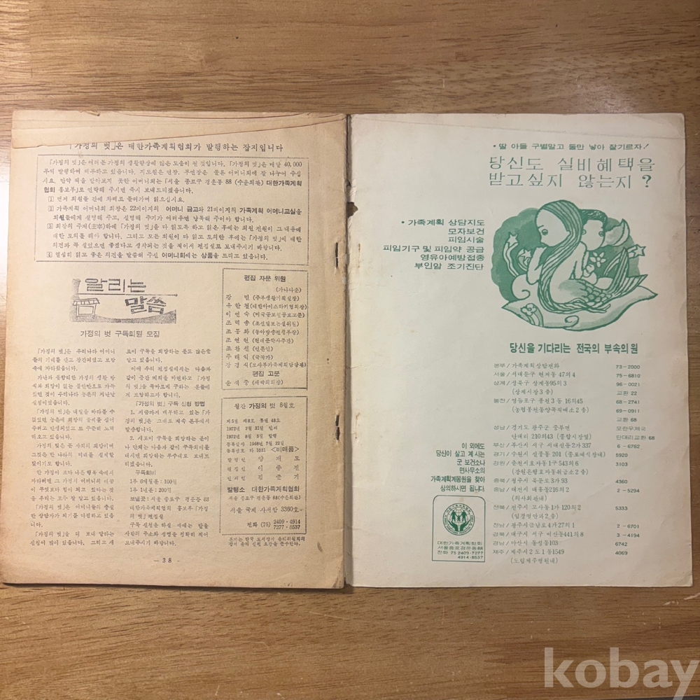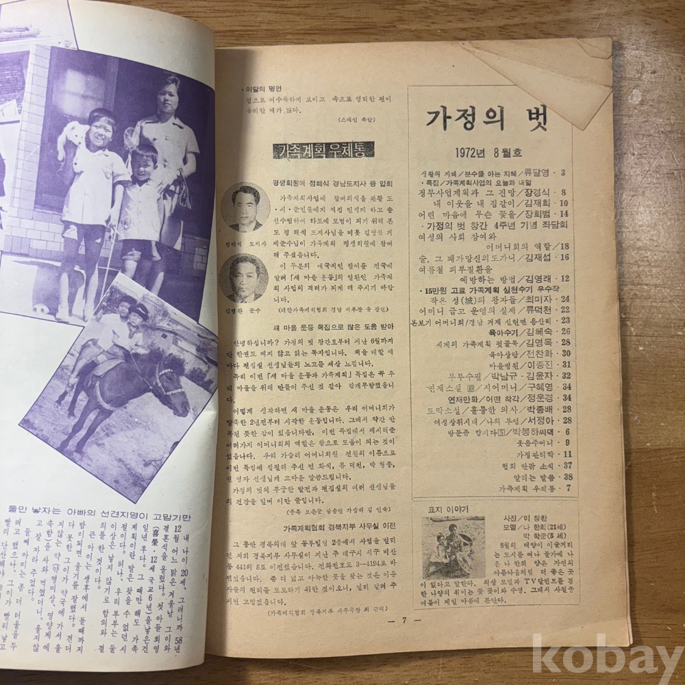 [희귀본, 잡지, 한국현대사, 제3공화국, 가족계획, 창간 4주년] <가정의 벗 1972년 8월>, 대한가족계획협회, 1972, p. 38, 상태 중급(사진참조)