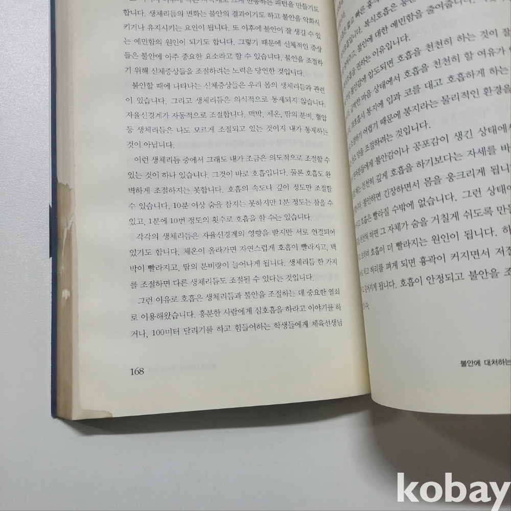 [천원경매] 정신과 전문의 최주연 박사의 불안 버리기 ; 책배 얼룩이 내용 스며들어 울엇음 (책배, 윗면). 밑줄있음. 하급/서고c204