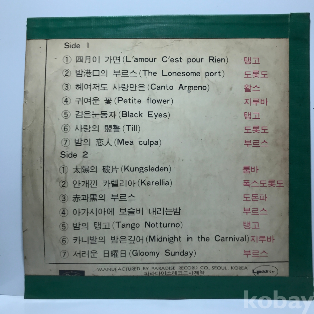 VG : 생활 기스 다수, 가벼운 노이즈 존재 발매정보 알수없음 가사지여부