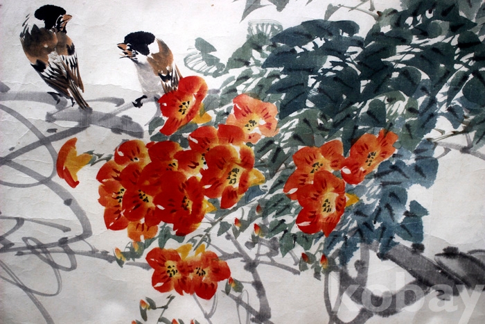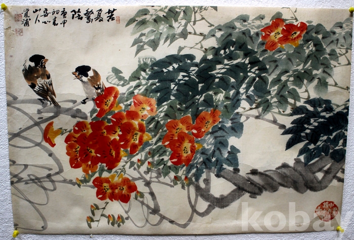 국전 특선작가인 覺浦(각포) 김동협의 화조도 - 능소화와 참새