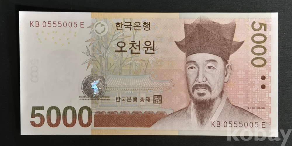 - 2006년 5차 오천원 0555005 투디지트 특이번호 미사용 지폐