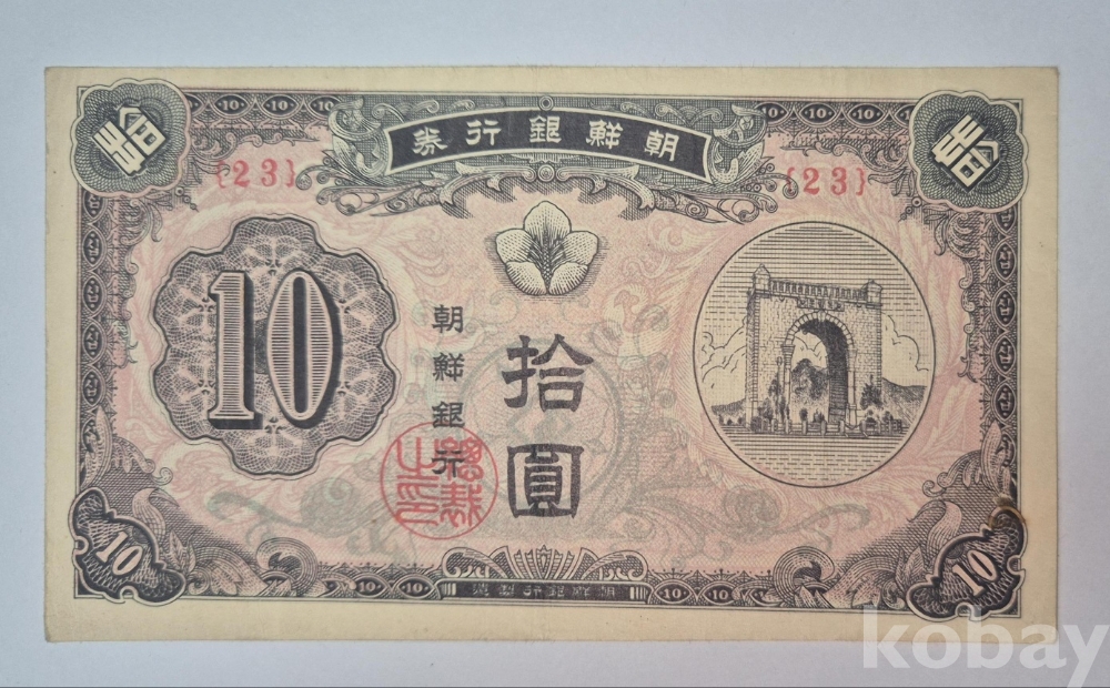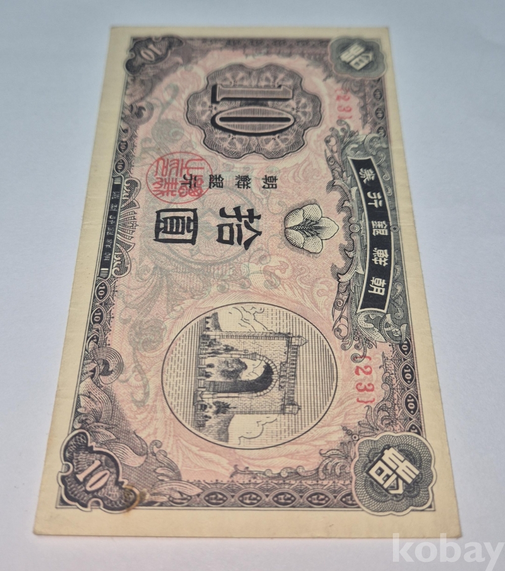 1949년 발행된 조선은행 신 10원/독립문 십원 지폐입니다.