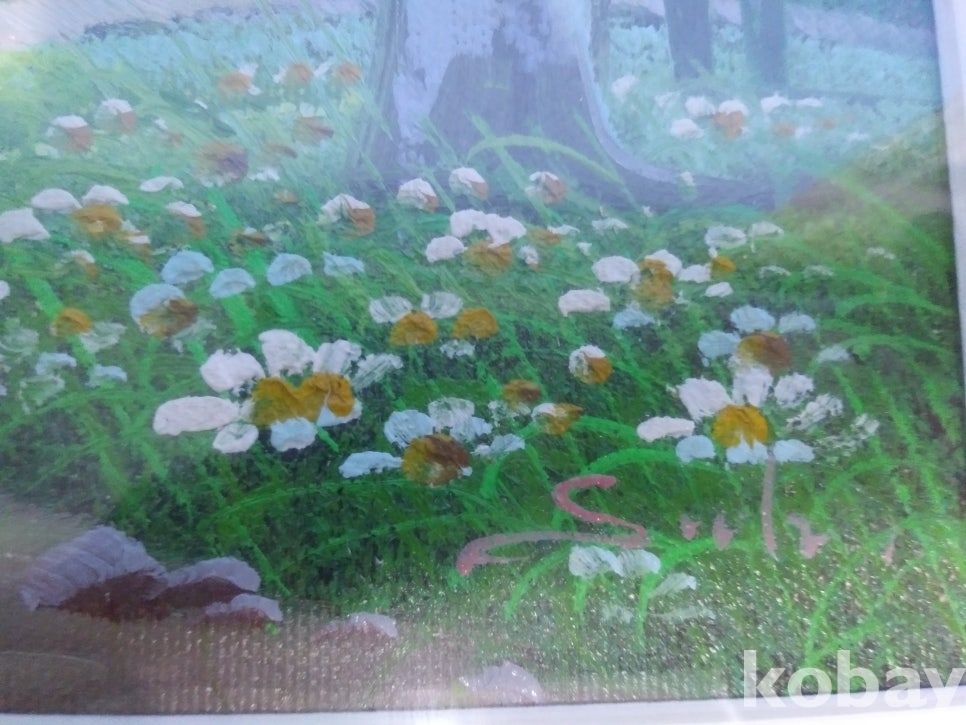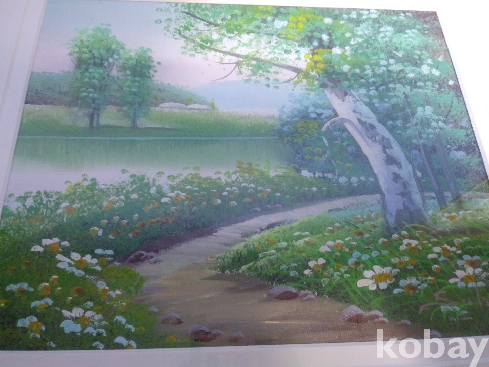 들꽃핀 숲속 풍경을 표현한 유화 액자 입니다.
