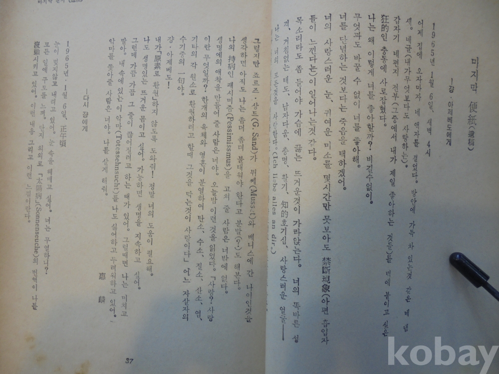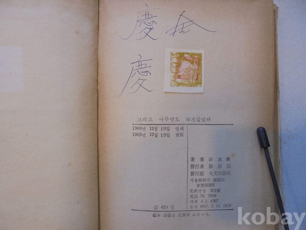 1969년 전혜린 " 그리고 아무말도 하지 않았다 "