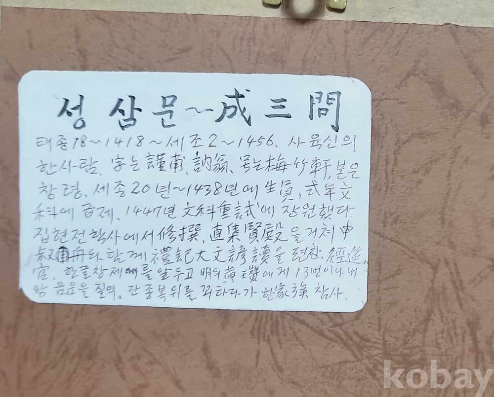사육신에 관계된 인물입니다,