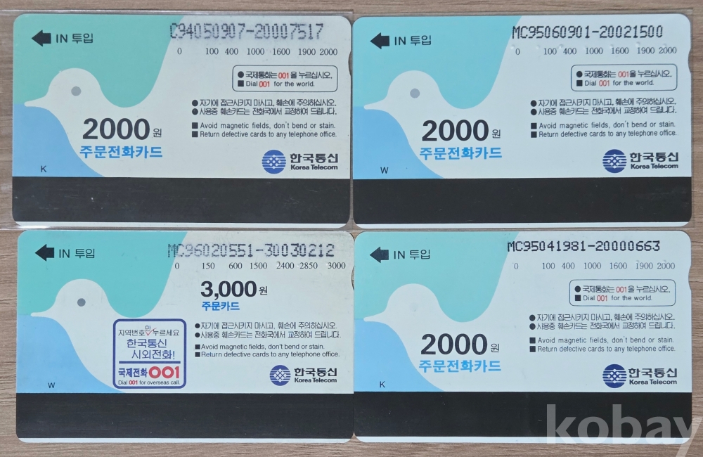 8-90년대 제작된 공중전화카드 4종일괄입니다 (사용제)