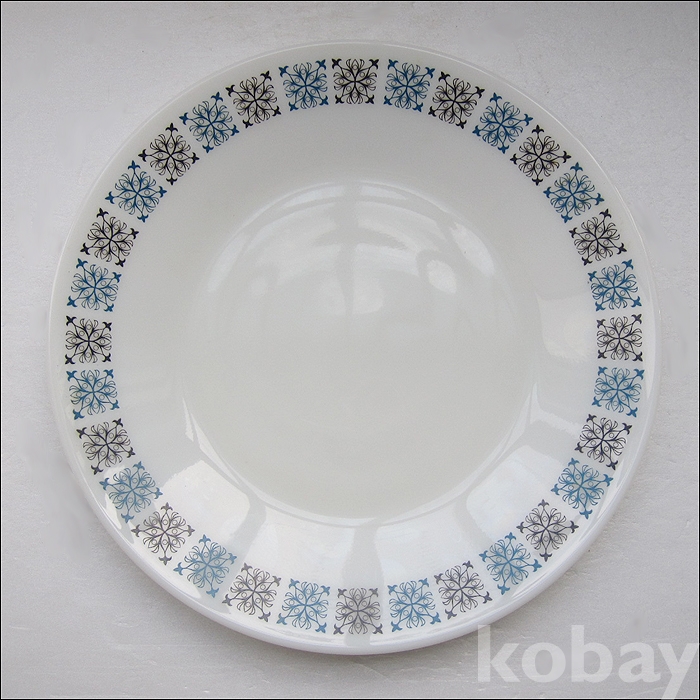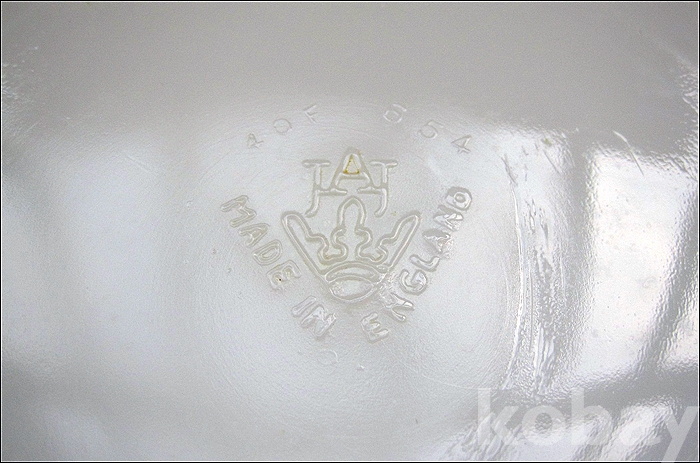 JAJ(제임스 A 조블링의 줄임말)는 1922년부터 공장(영국 선덜랜드)이 2007년에 문을 닫을 때까지 영국에서 PYREX 식기, 캐서롤 접시 및 기타 제빵 도구를 생산했습니다. 오팔 파이렉스의 생산은 1950년대 중반에 식당용 식기로 시작되어, 나중에 1957년에 테이블웨어 패턴인 코로넷과 와일드 브라이오니로 일반 대중에게 출시되었습니다. 얼마 지나지 않아 '게이티' 제품군이 출시되었고, 여기에는 항상 인기 있는 패턴인 스노우플레이크와 데이지가 포함되었습니다. 이러한 패턴은 1960년대를 거치며 폭발적으로 증가한 오팔 파이렉스 제품군의 시작이 되었으며, 영국 시장에서만 볼 수 있는 다양한 디자인을 소비자에게 제공했습니다. 1970년대 중반까지 제품에는 JAJ MADE IN ENGLAND라는 백스탬프가 찍혀 있었는데, 이때 뉴욕의 코닝 유리 공장에서 회사를 전부 인수하여 PYREX ENGLAND라는 백스탬프가 찍힌 제품 생산이 시작되었습니다. 영국에서 생산된 오팔 파이렉스는 1990년대 초까지 판매되었습니다.