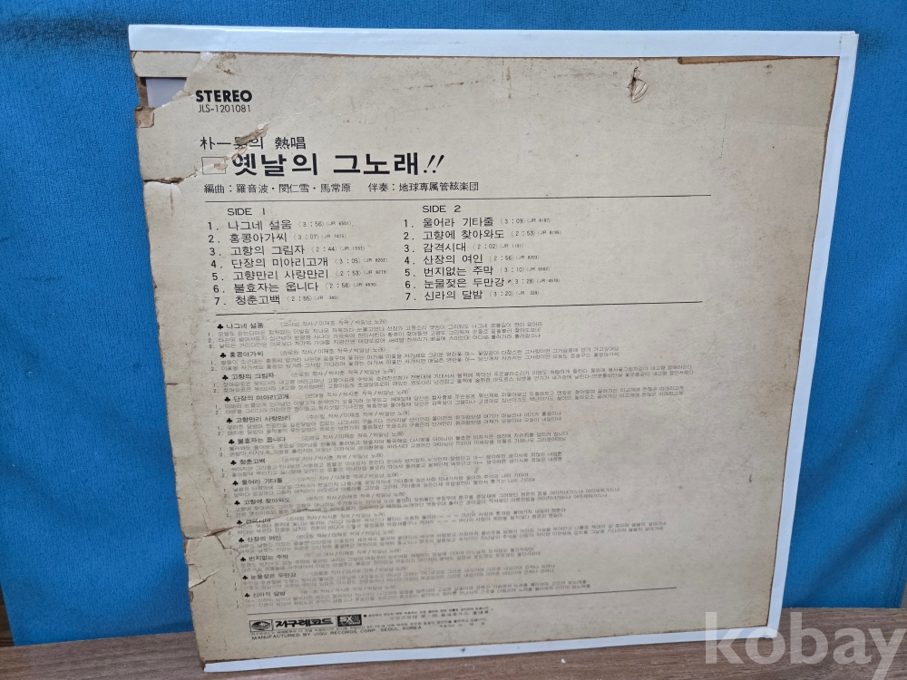 | 자켓상태 | VG : 주름, 접힘, 모서리 찢김 다수 | 음반상태 | EX : 재생에 영향 없는 가벼운 기스 존재 | 발매정보 | 초반 | 가사지여부 | 무 |