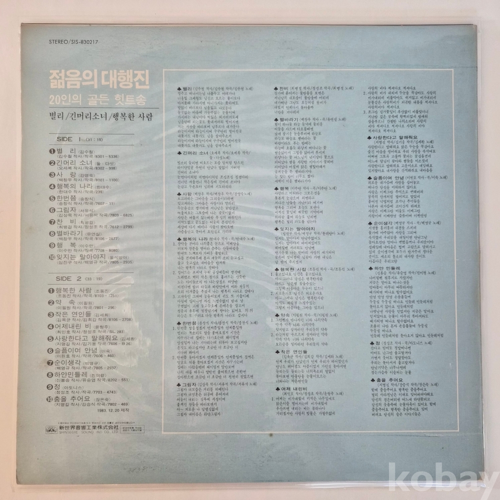 [추억의 희귀 LP 기획전] (김수철/한대수/유연실 外) 젊음의 대행진 20인의 골든 힛트송 / 별 리 ☆ 긴머리 소녀