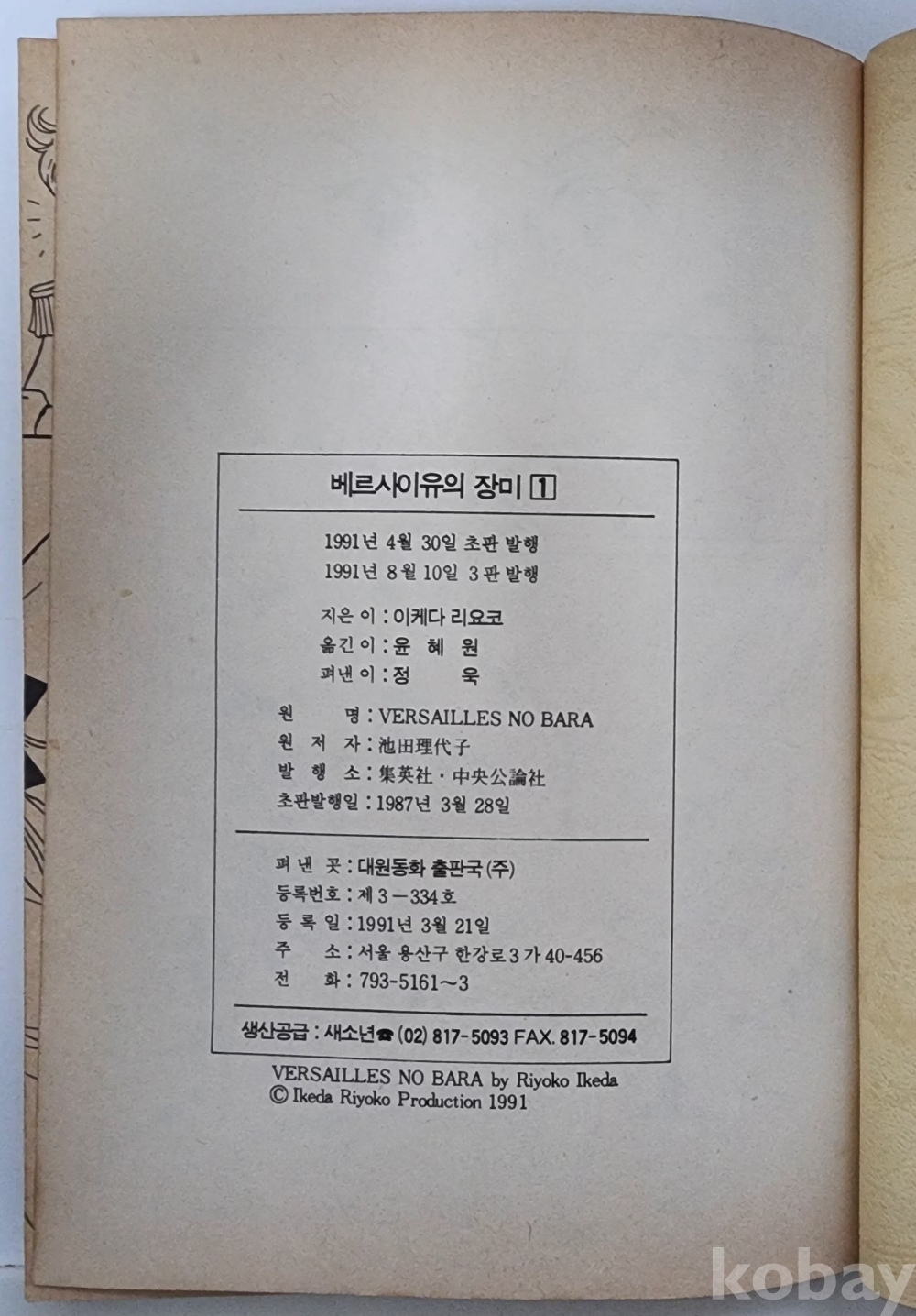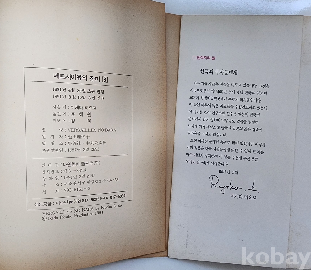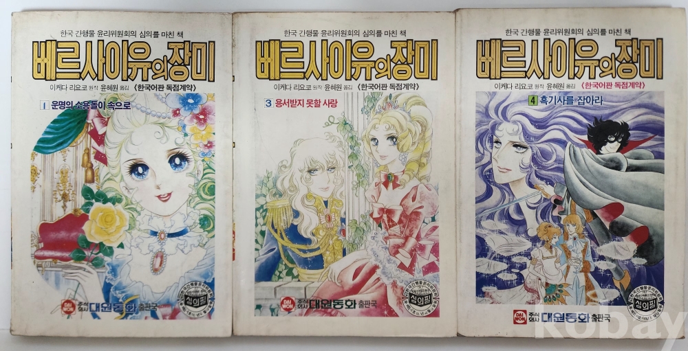 자료명/ 저자/ 발행/ 형태사항 | 이케다 리요코 원작만화 『베르사이유의 장미 ①,③,④』 3책/ 이케다 리요쿄 원작·윤혜원 옮김/ 서울: 대원동화 출판국(주), 1991.8.30_3판/ 3冊. |