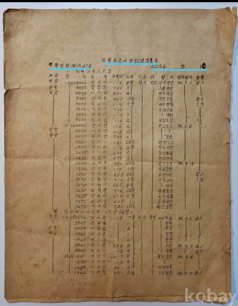 ◈ 특별명령(병) 제60호에 의하여 예비사단부 13명 및