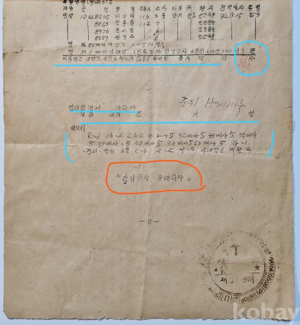 ◈ 중위 박리수가 군번과 성명의 착오가 없음을 확인하고 원형 인장 날인함.