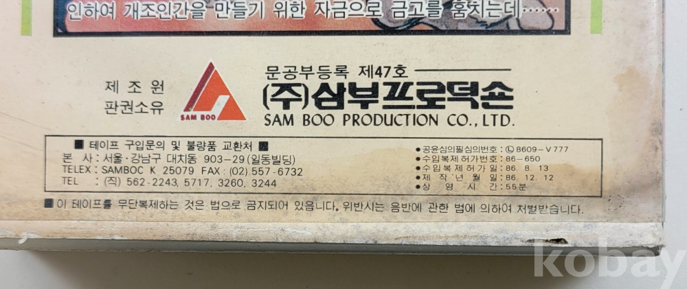 물 품 명 | 유도보이 : 초인머신 / 1986년 / 삼부프로덕션 |