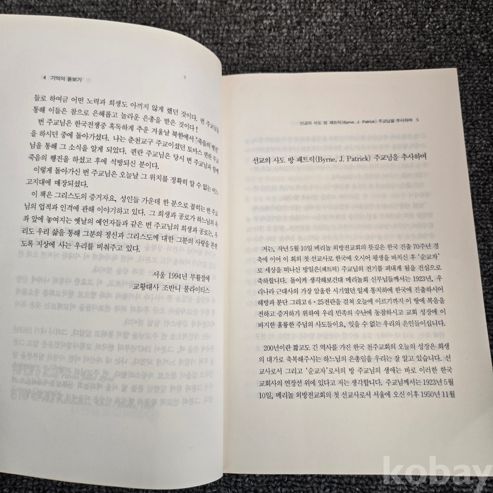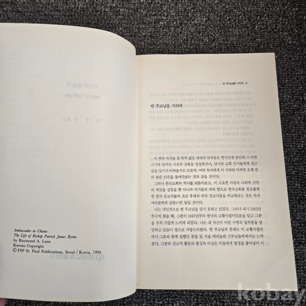 [한국현대사, 가톨릭, 천주교, 희귀본] 레이먼드. A. 지음, 박준영 옮김, <기억의 돋보기 : 패트릭 번 주교의 생애>, 성바오로출판사, 1994, p. 264, 상태 중급(사진참조)