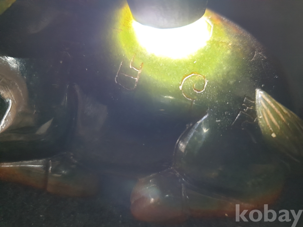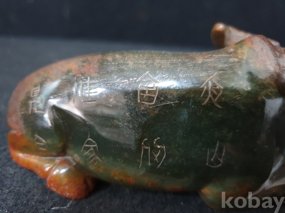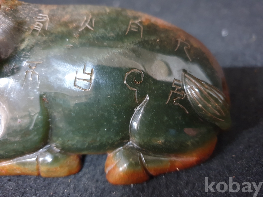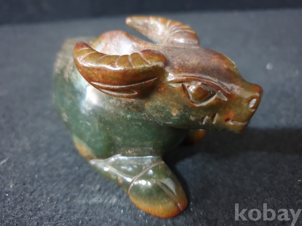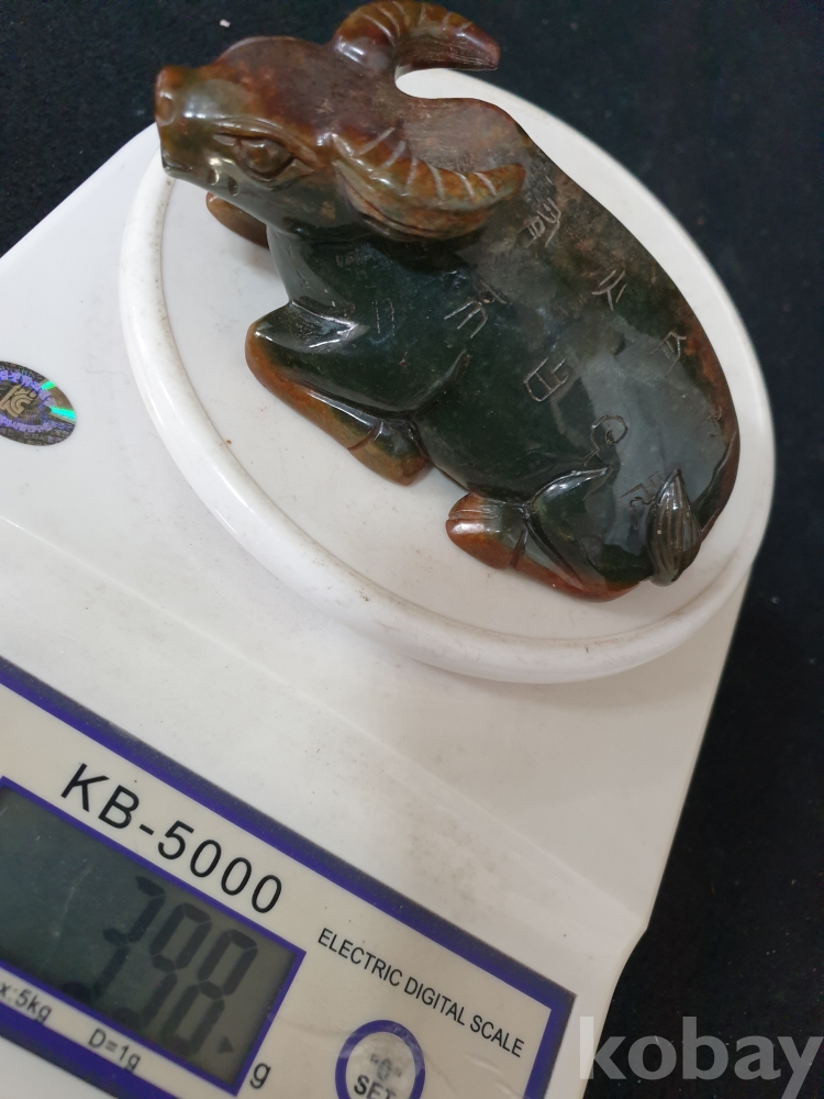 사이즈:높이:5.5센치.폭:12센치. 무게:398그람. 설명:이쁜 색상의 등에 명문글씨가 세겨져 있는 고급 화전옥 재질의 섬세하게 조각된 물소기형의 출토 춘추시기 고급 화전옥 물소상 옥기 입니다.상태 양호합니다.사진참고바랍니다.
