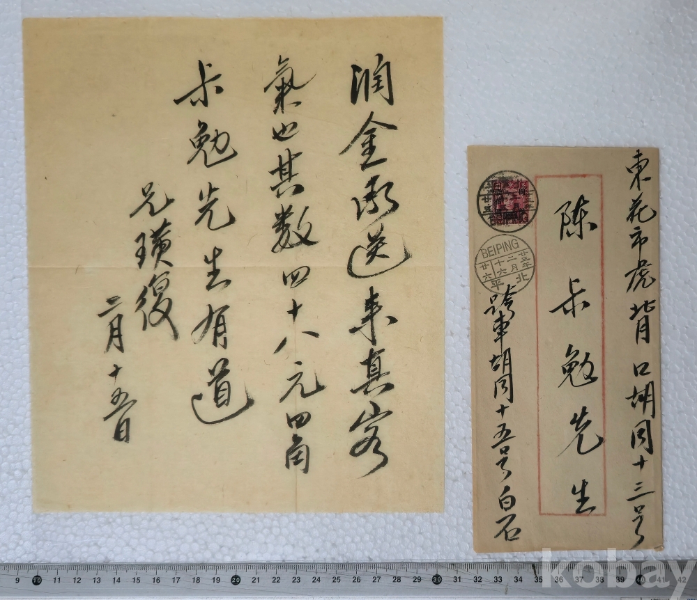 齊白石(1860-1957)선생 편지/陳尗勉선생에게1934년,中國